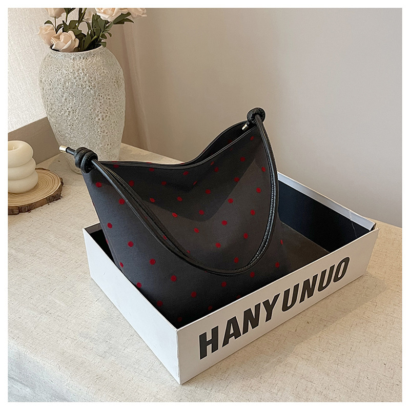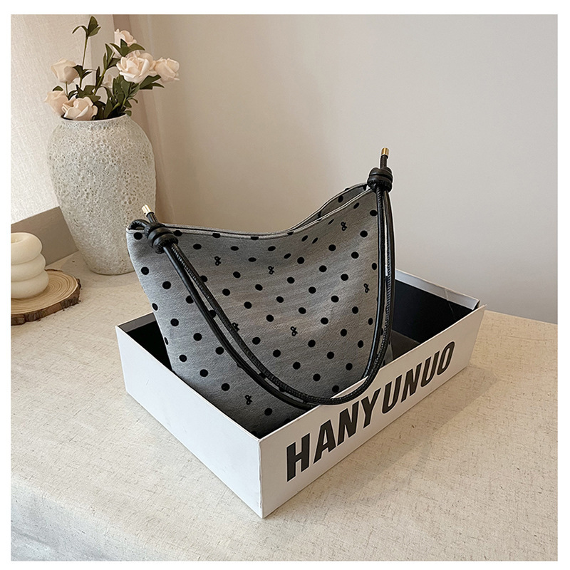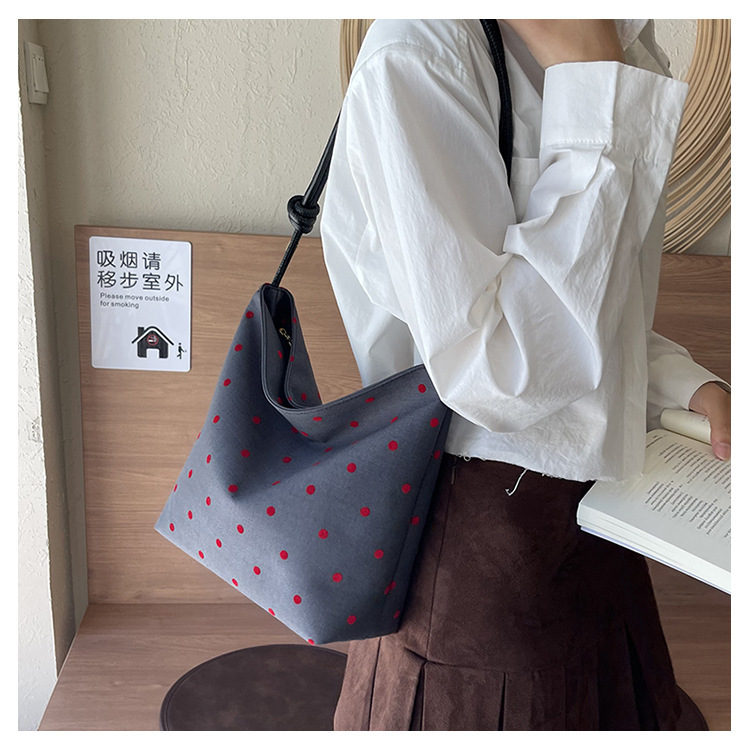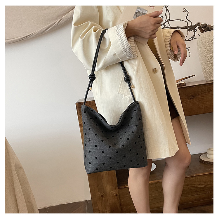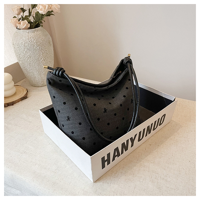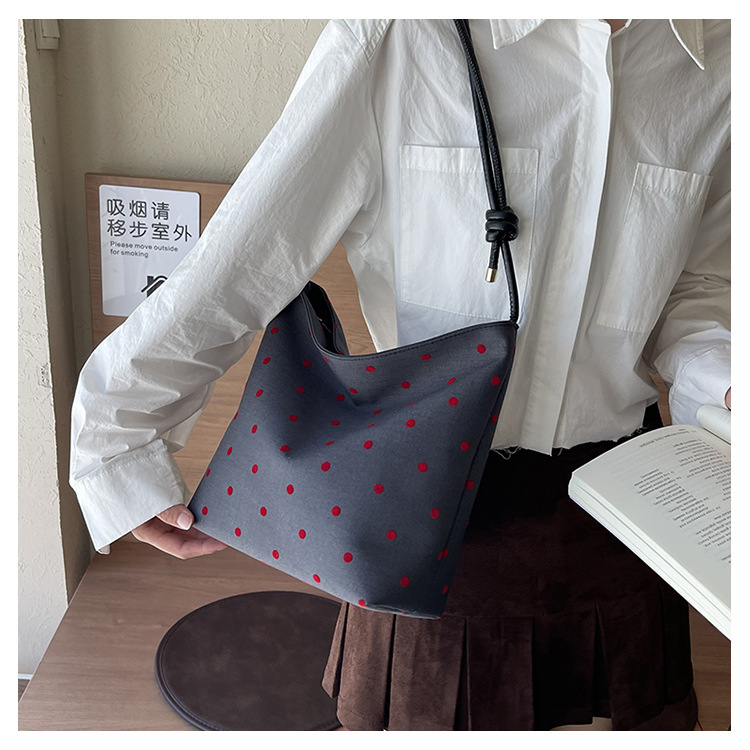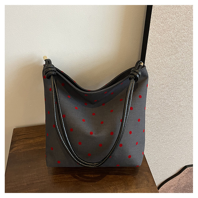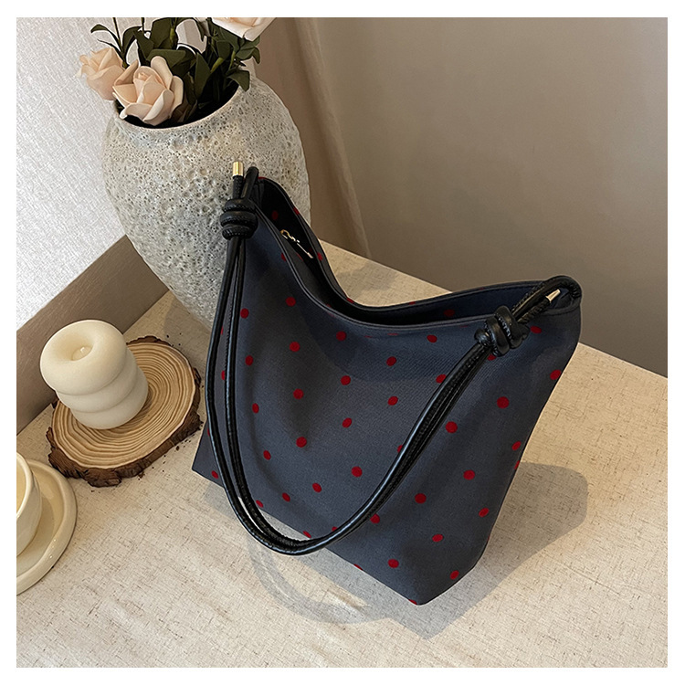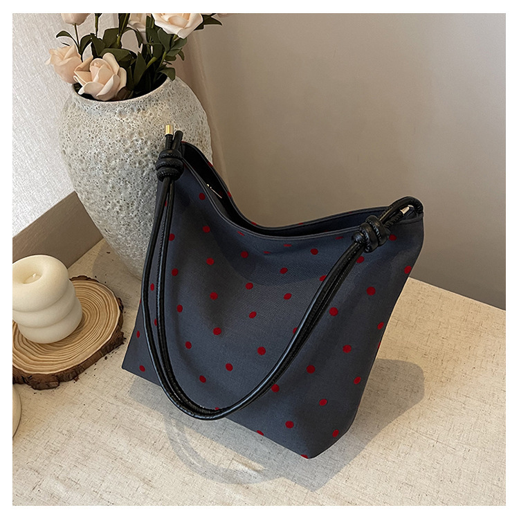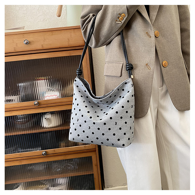 新款帆布波点印花女包蝴蝶格子大容量通勤时尚腋下托特单肩包 English | 投诉