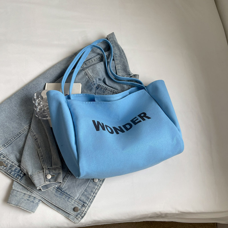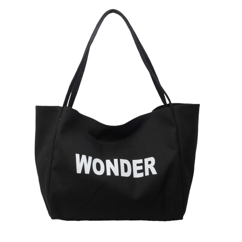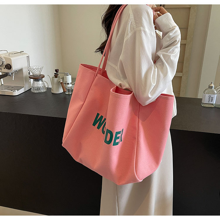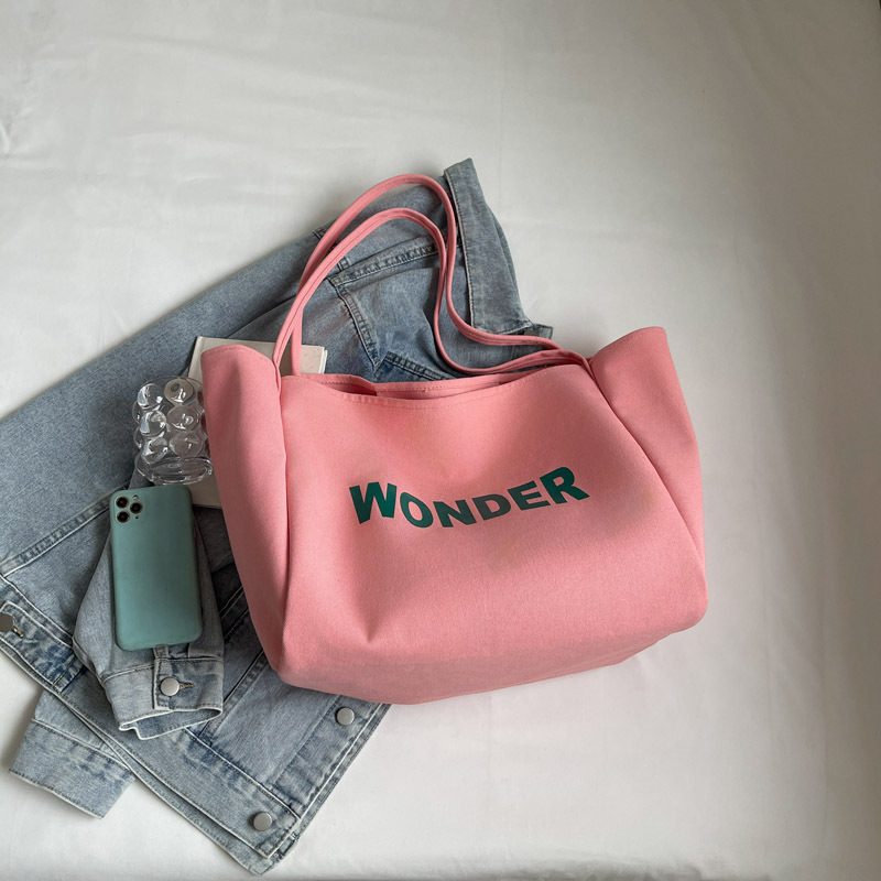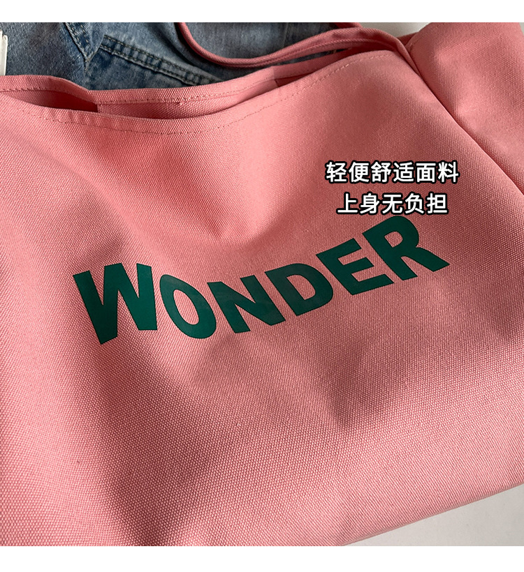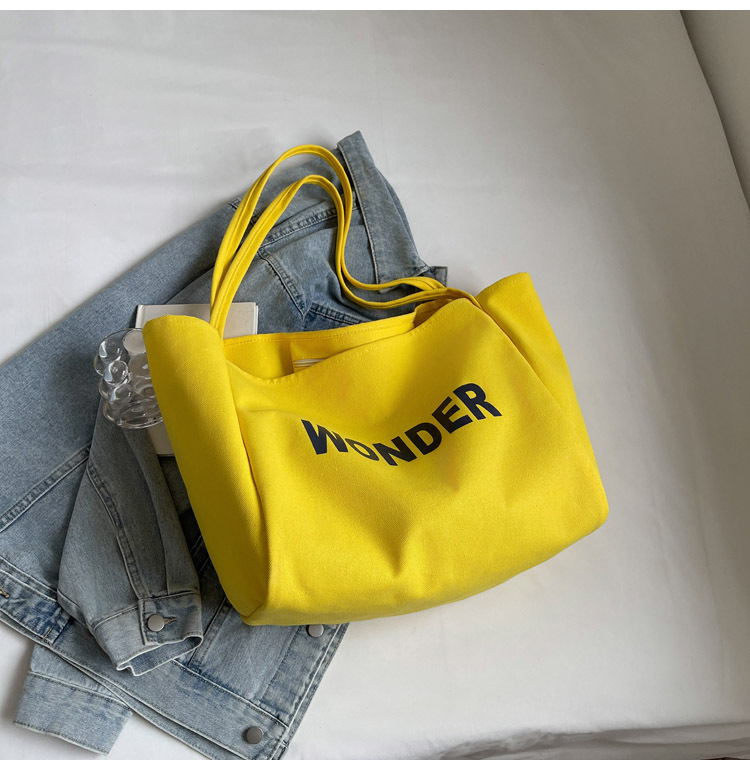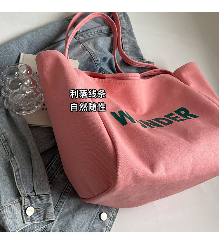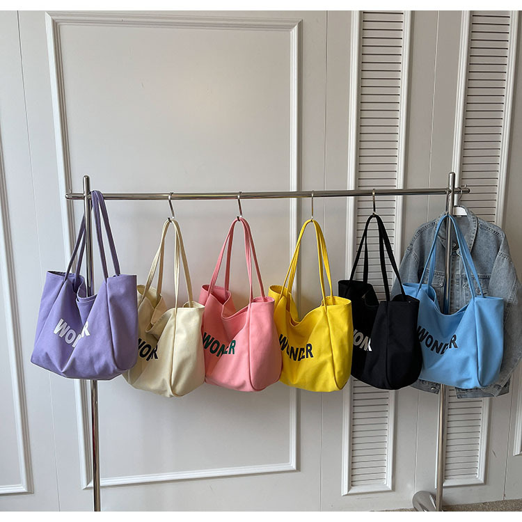 韩版慵懒风包手提背包夏季新款帆布字母印花大容量简约单肩包 English | 投诉