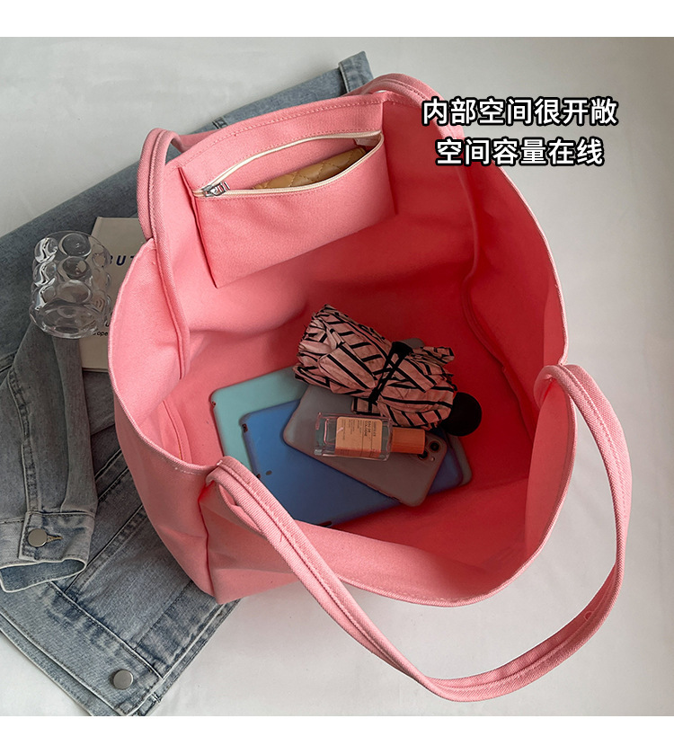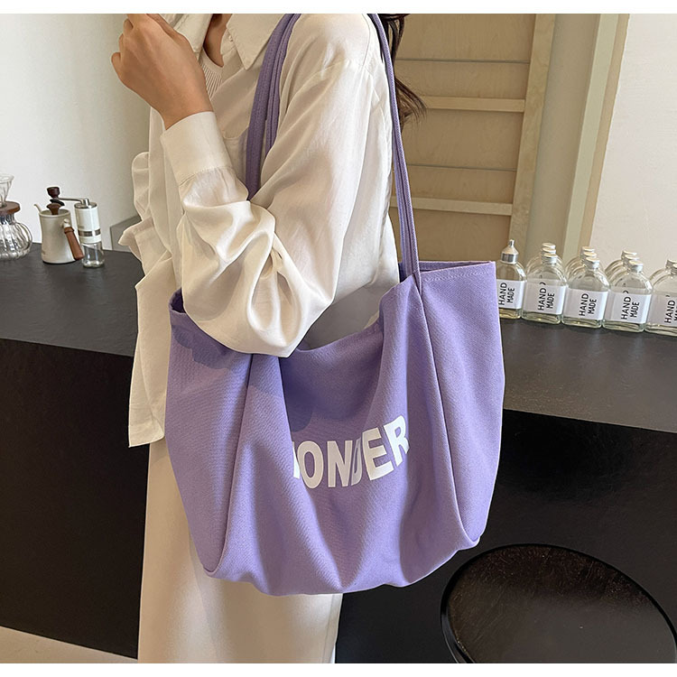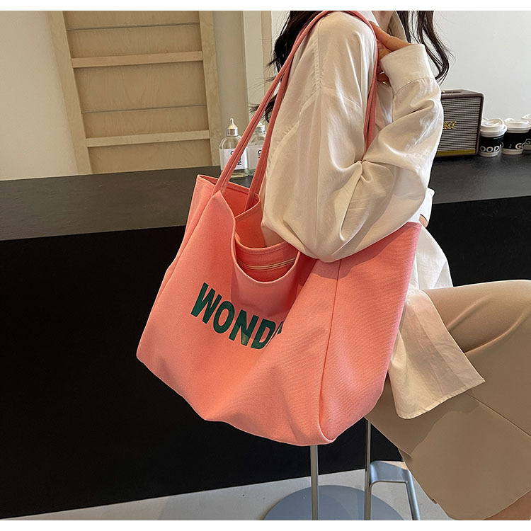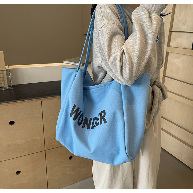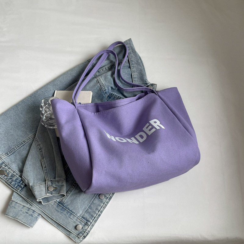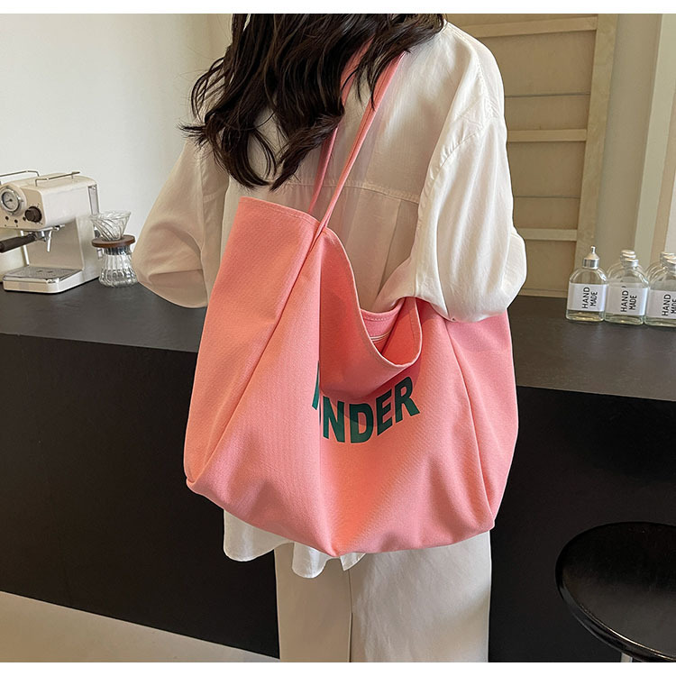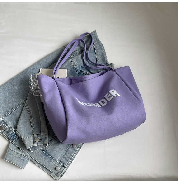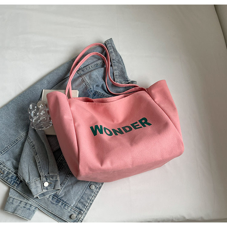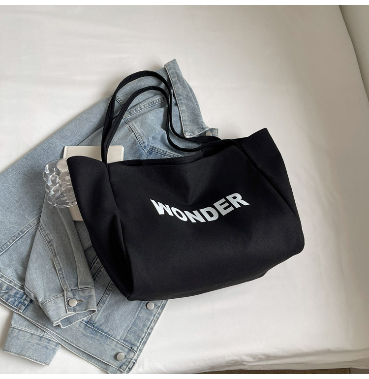 韩版慵懒风包手提背包夏季新款帆布字母印花大容量简约单肩包 English | 投诉