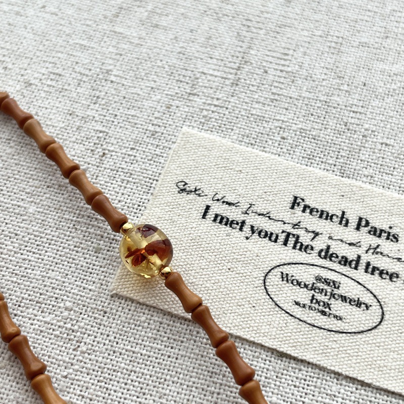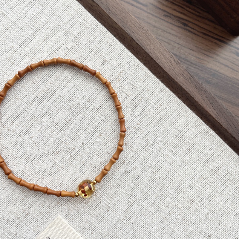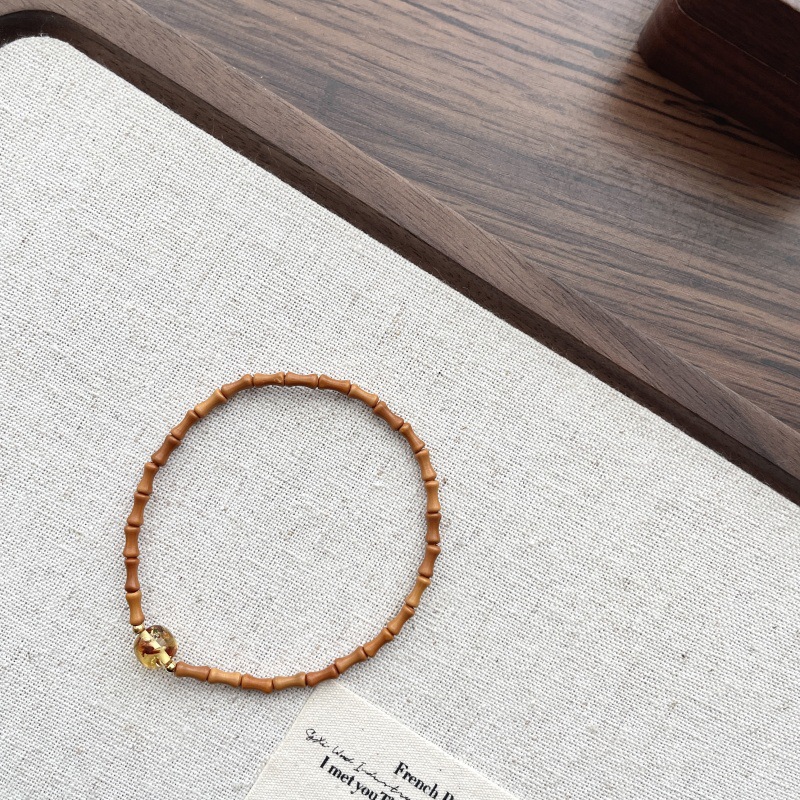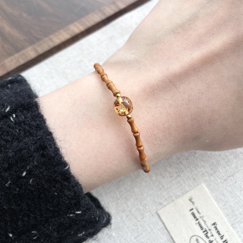 先泰S925银橄榄核竹节手串天然琥珀原创设计轻奢古风素雅造型百搭