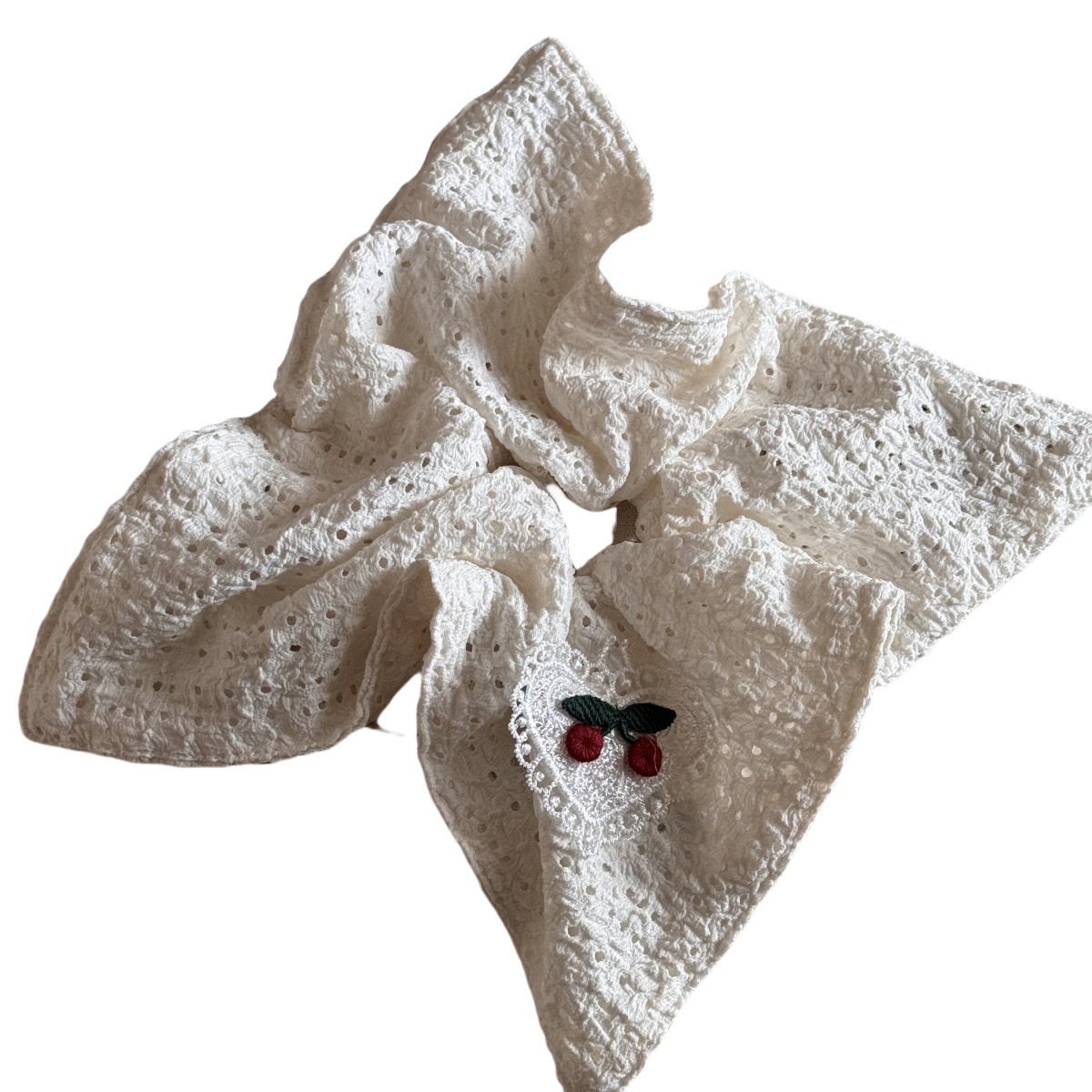 春夏新镂空方巾爱心樱桃方形大肠发圈甜美少女扎马尾皮筋头绳发饰 投诉