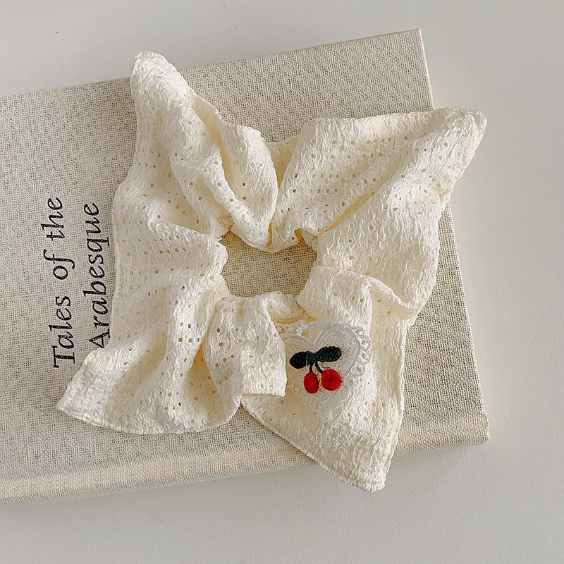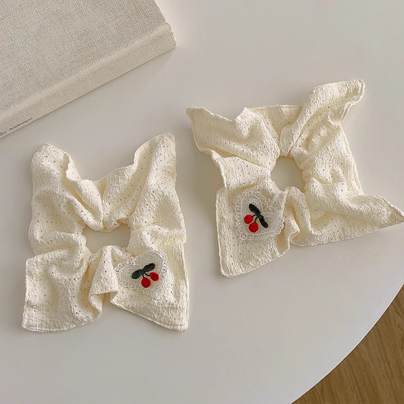 春夏新镂空方巾爱心樱桃方形大肠发圈甜美少女扎马尾皮筋头绳发饰