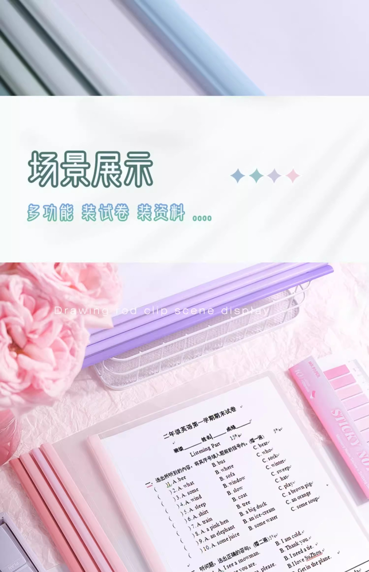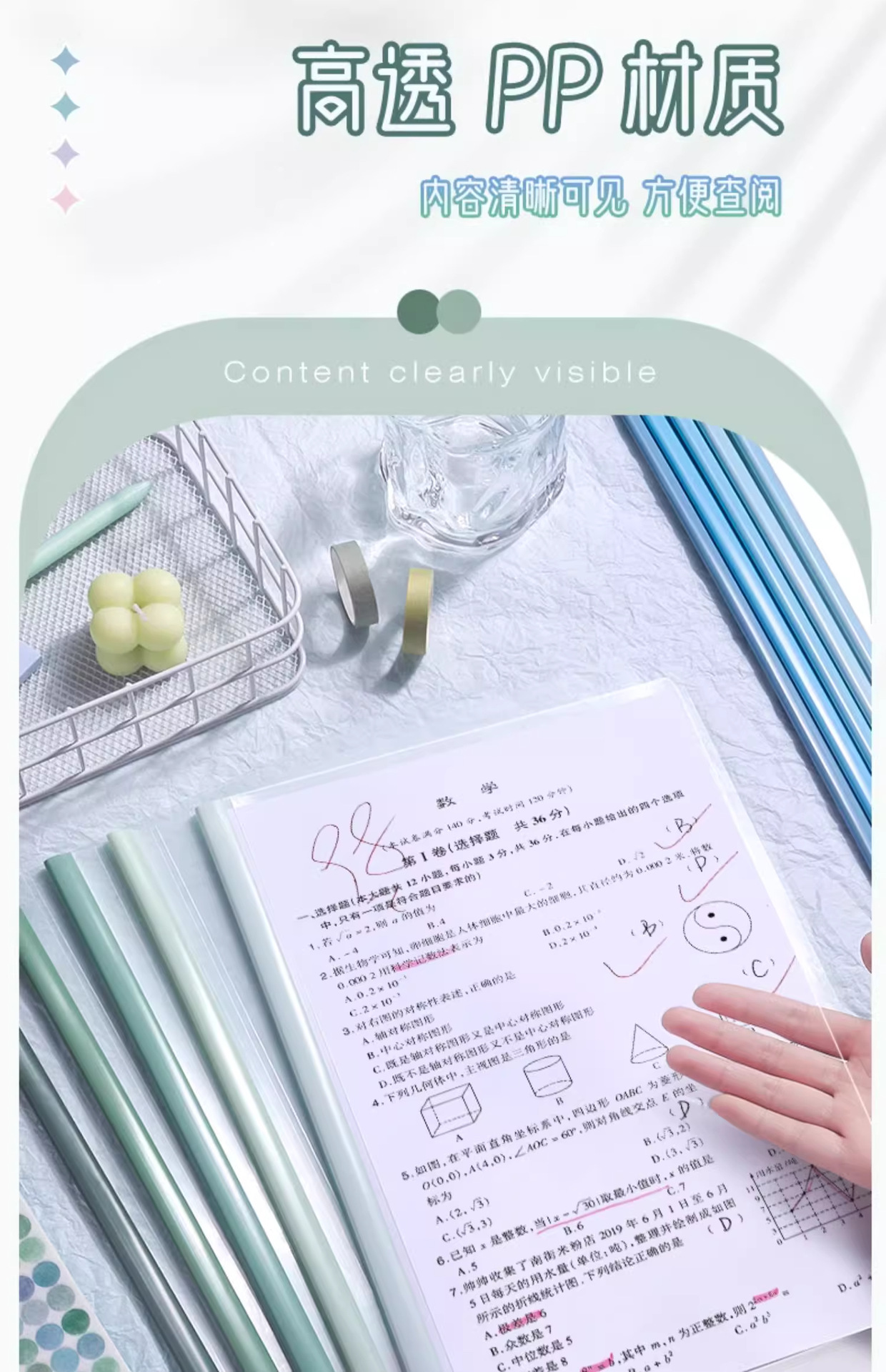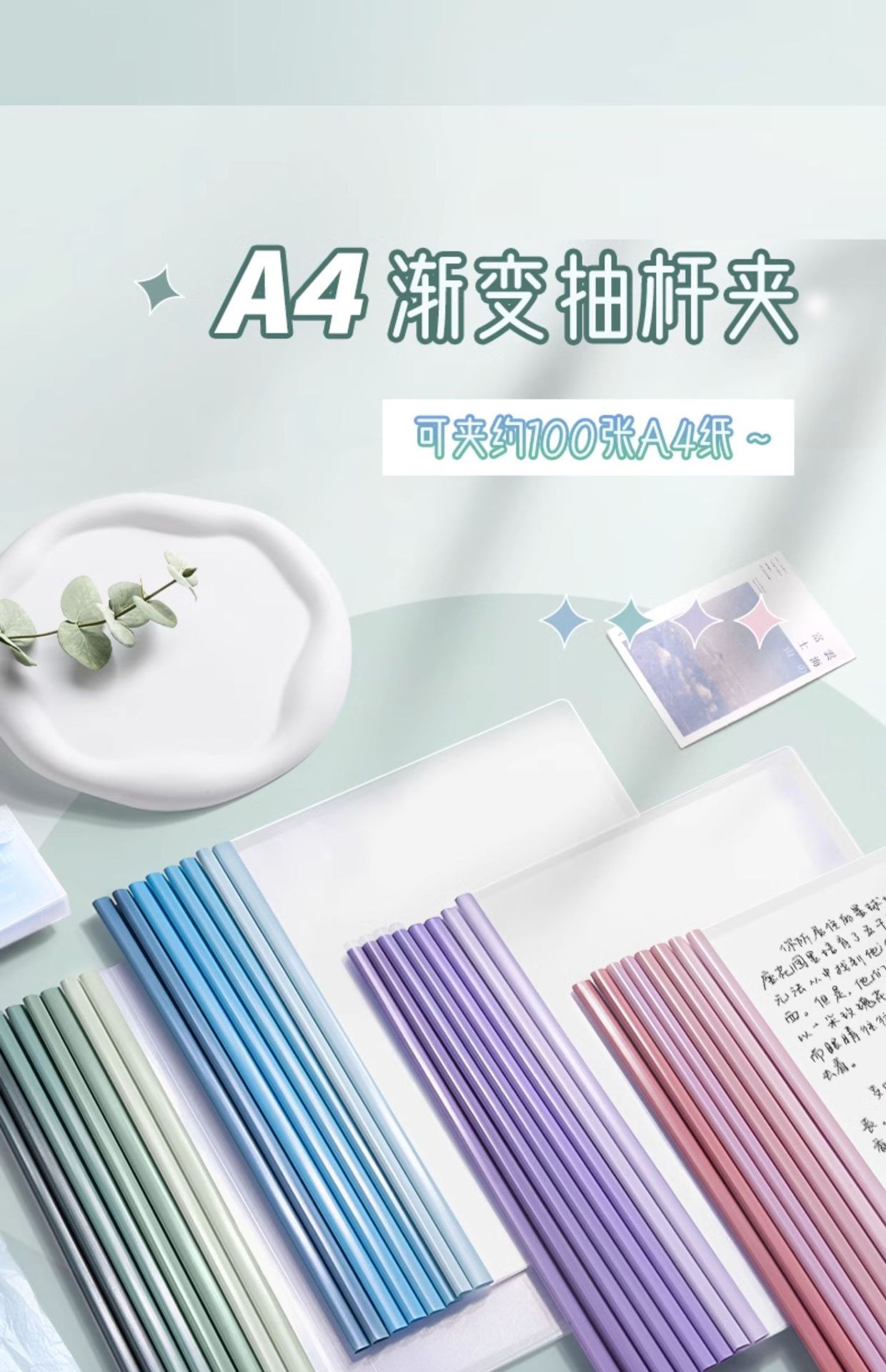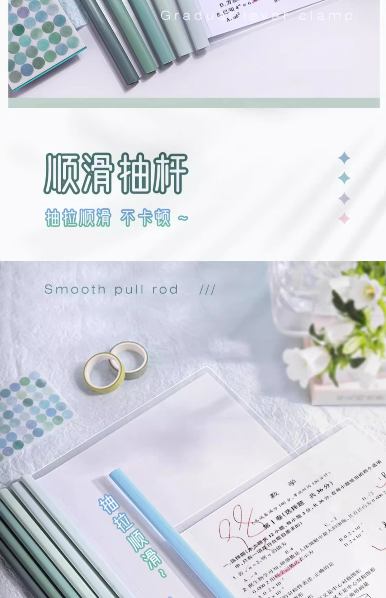 真彩渐变抽杆夹透明抽试卷夹a4水滴文件夹小学生初中生专用拉杆夹