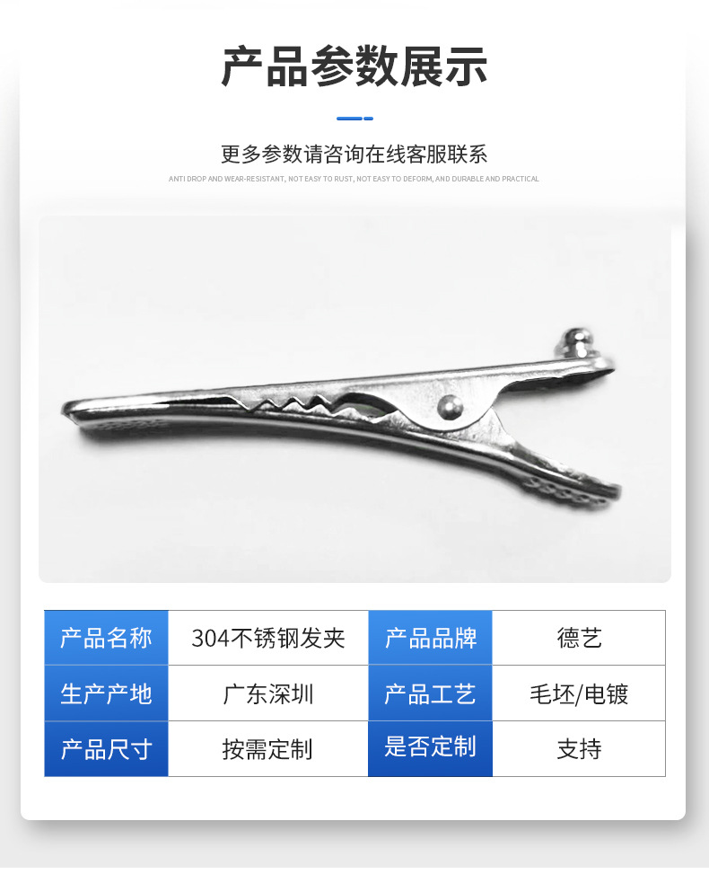 材质: 304不锈钢 货号: 动物双功能心电夹 品牌: 德艺 样式: 女式 处理工艺: 电镀 发夹分类: 鸭嘴夹 产地: 深圳 主要下游平台: 抖音 颜色: 4.0按扣夹式动物双功能心电夹子 有可授权的自有品牌: 否 重量: 0.5 kg/个
