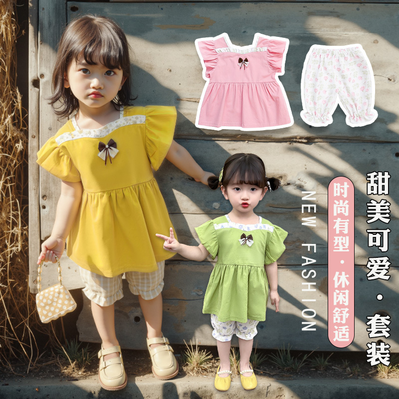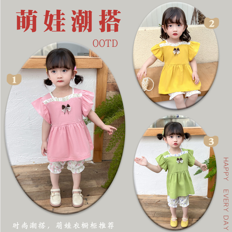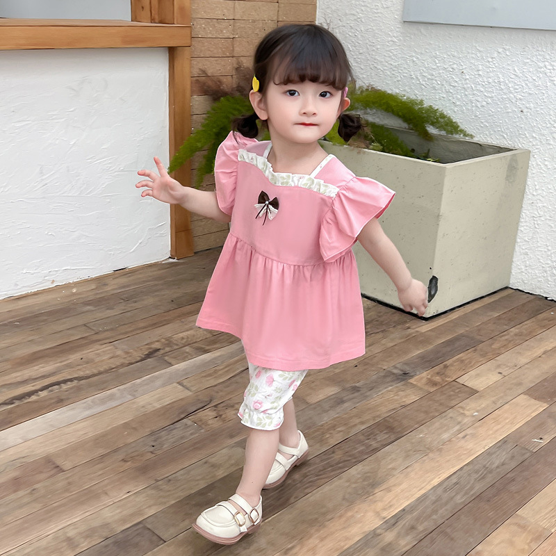 品牌: 呆呆兽 货号: B2-花裤子短袖 货源类别: 现货 适用性别: 女 风格: 韩版 套装类型: 裤套装 套装件数: 两件套 礼盒内容: 服装 产地: 浙江 适合年龄段: 婴幼童(1~3岁,80~100cm)
