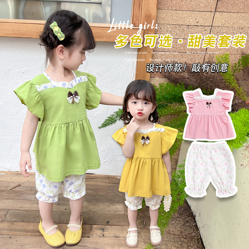 婴幼儿夏装新款女宝宝套装0-1-2-3-4岁女宝宝吊带短裤宝2件套新款