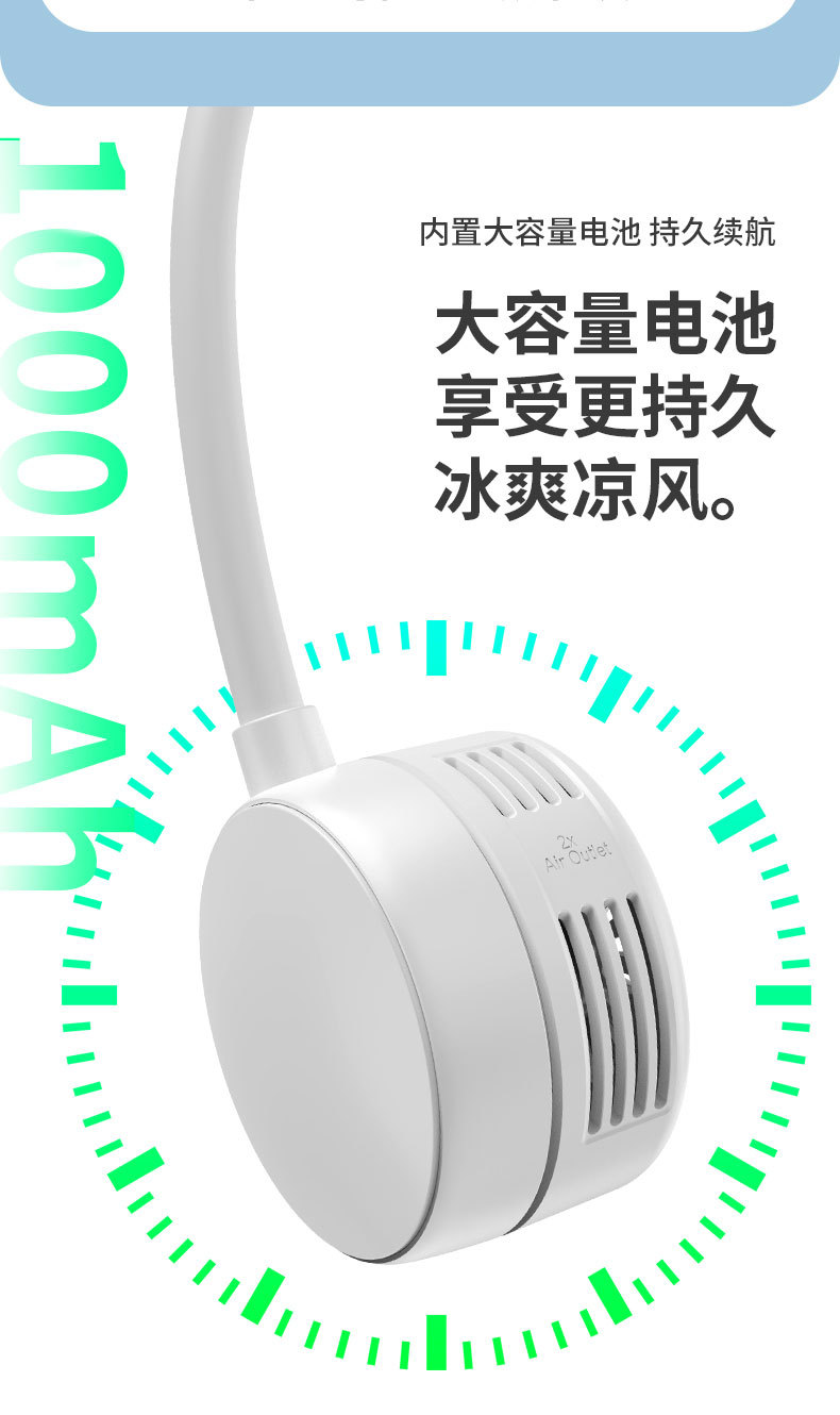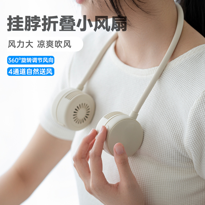 无叶挂脖小风扇折叠式usb充电款长续航户外随身手持涡轮电风扇