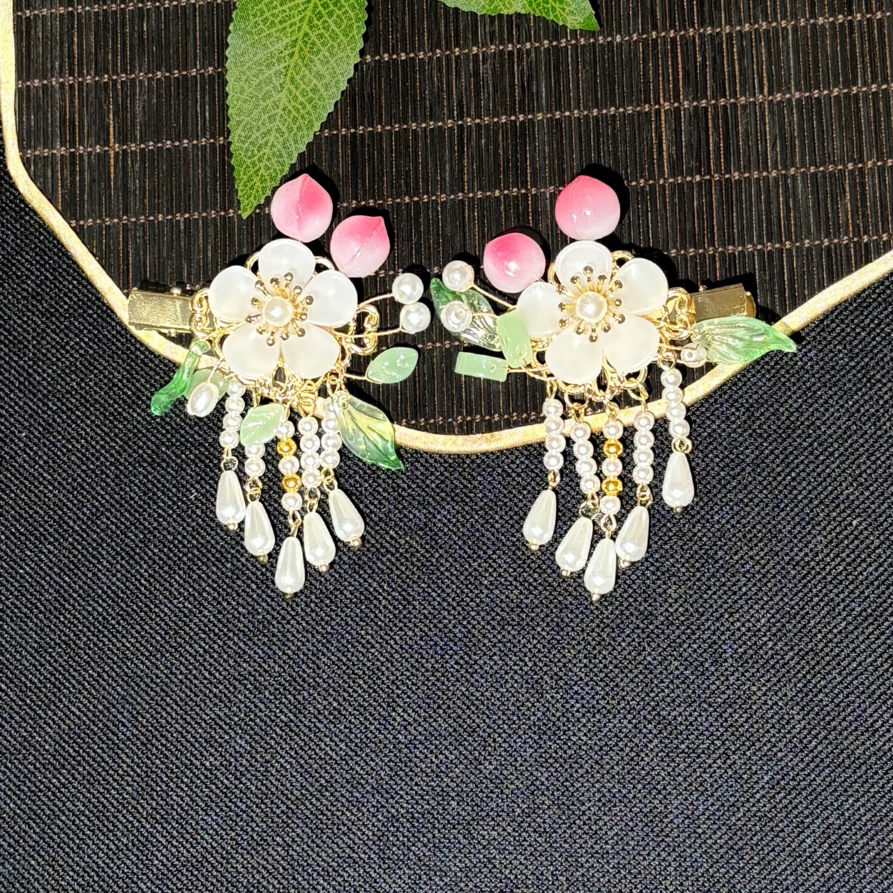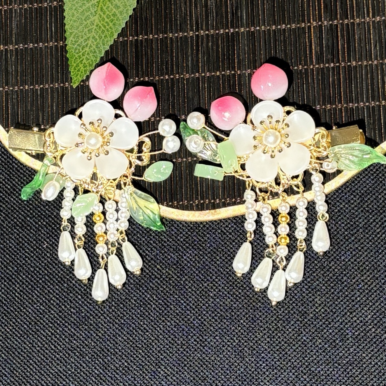材质: 玻璃/琉璃 品牌: 汉家儿女 样式: 儿童 处理工艺: 纯手工制作 发夹分类: 对夹 产地: 义乌 主要下游平台: 淘宝,拼多多,抖音 颜色: 流苏短款(一个),流苏长款(一个) 流行元素: 桃花 上市年份/季节: 2024年夏季 重量: 0.02 kg/个