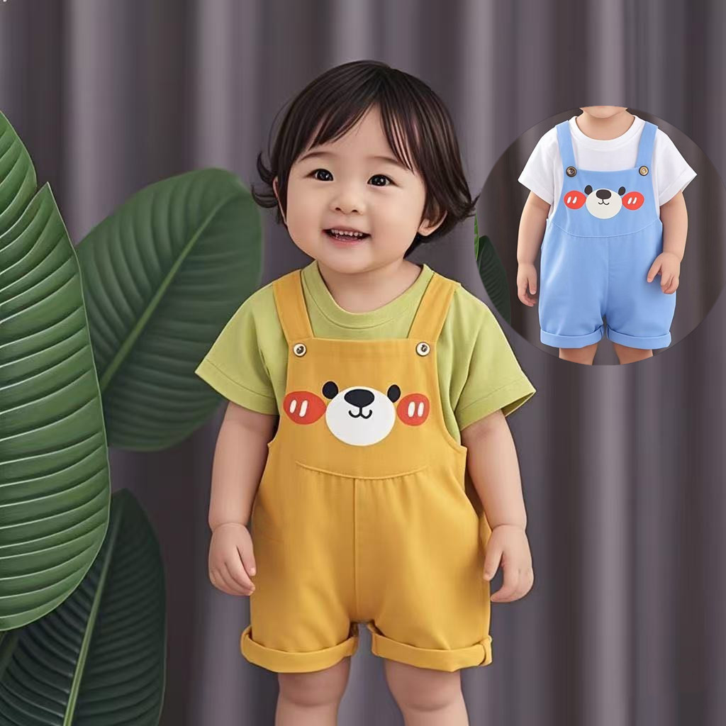 婴儿衣服夏季超萌卡通短袖背带裤休闲两件套0一2岁男女宝宝夏装潮