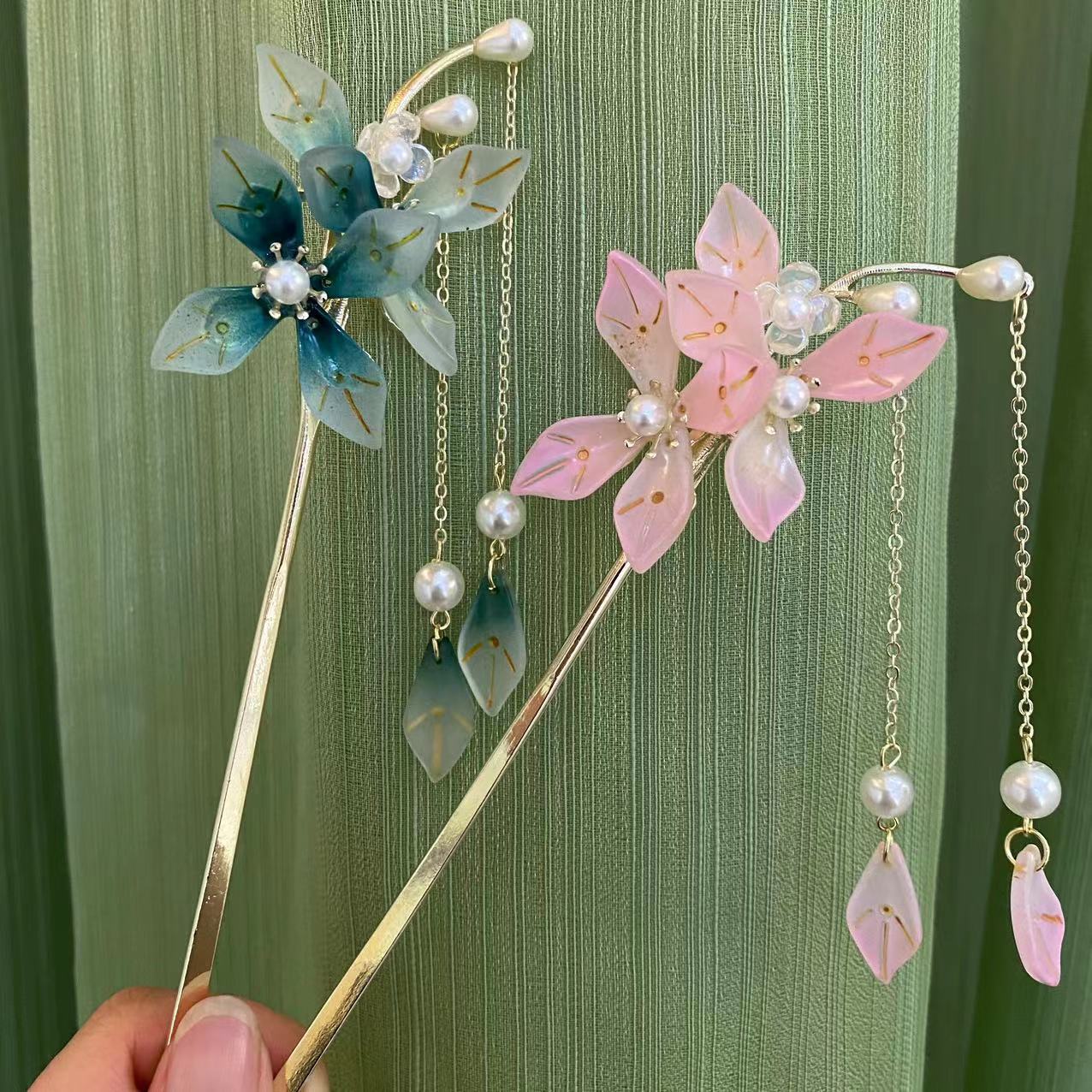 新中式汉服盘发簪子花朵珍珠流苏步摇发饰高级感旗袍发钗古风发簪