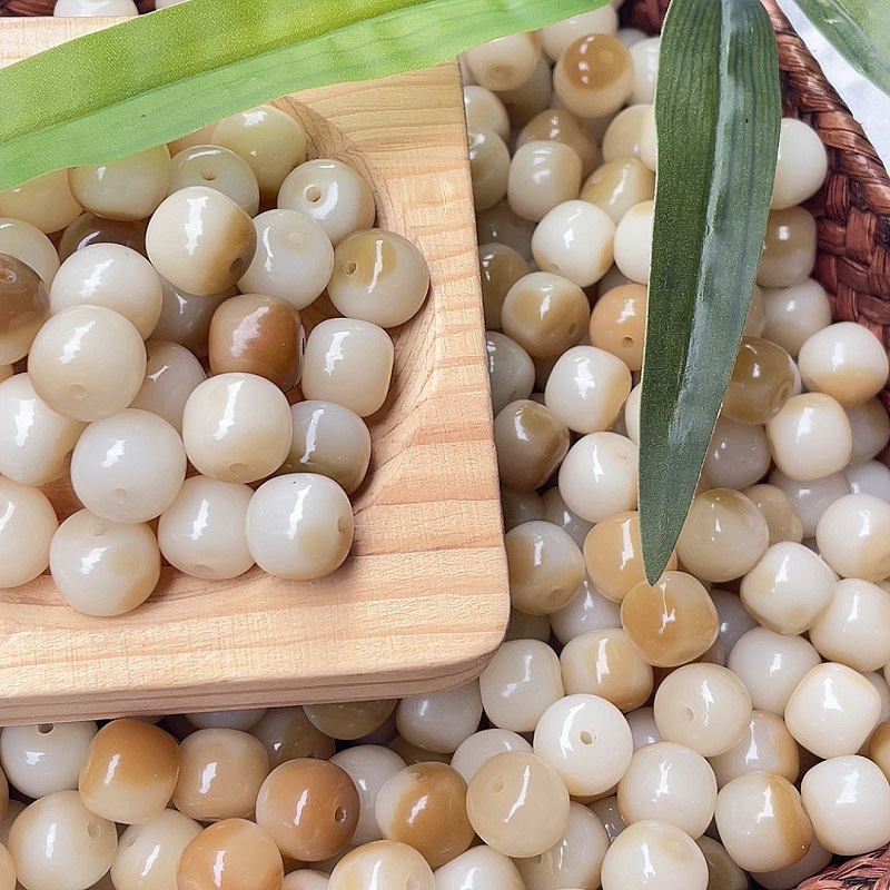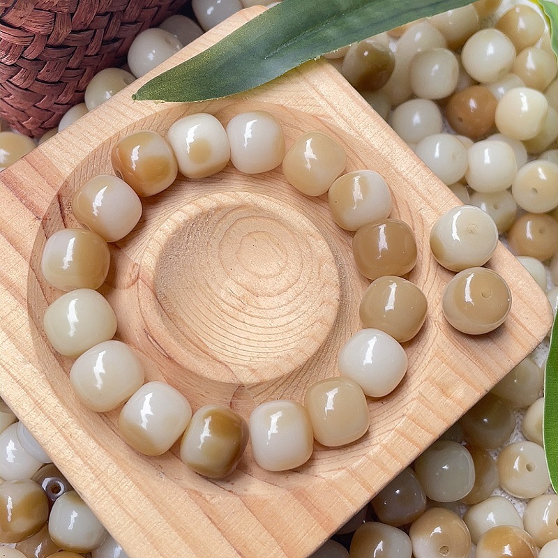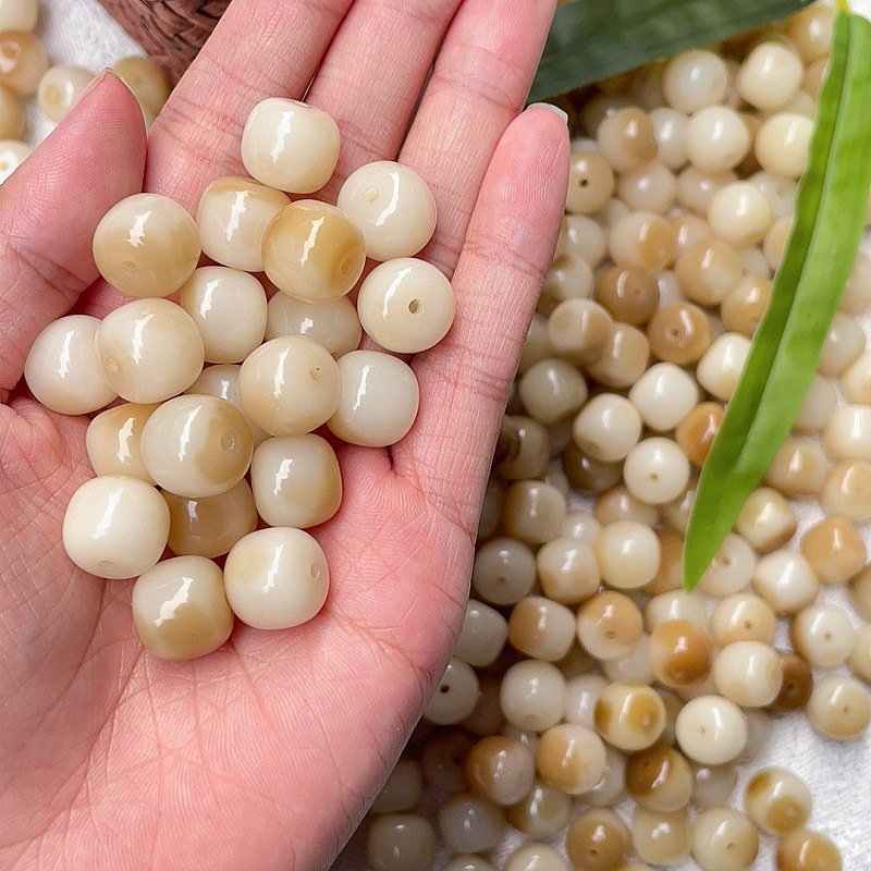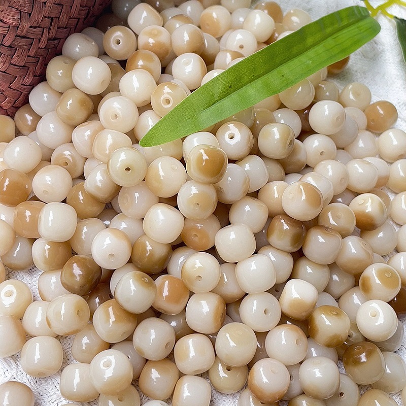 批发奶咖花皮菩提散珠diy学生版盘玩原籽桶珠文玩佛珠男女