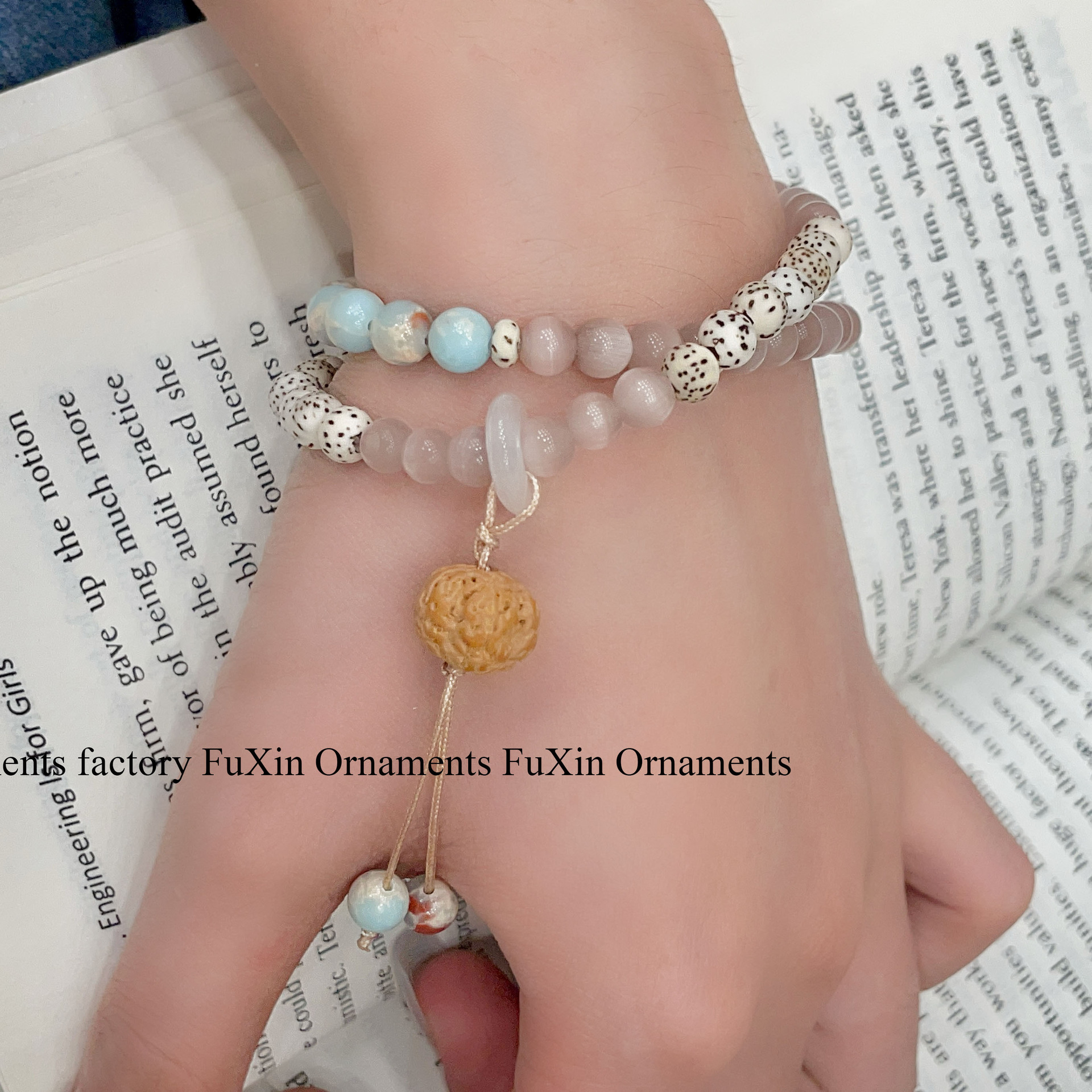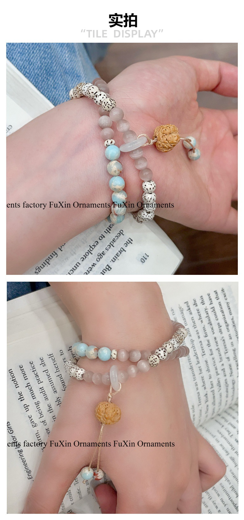新中式新款国风手串女款复古寿山石文玩学生盘玩串珠小众精致简约