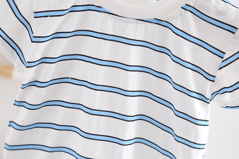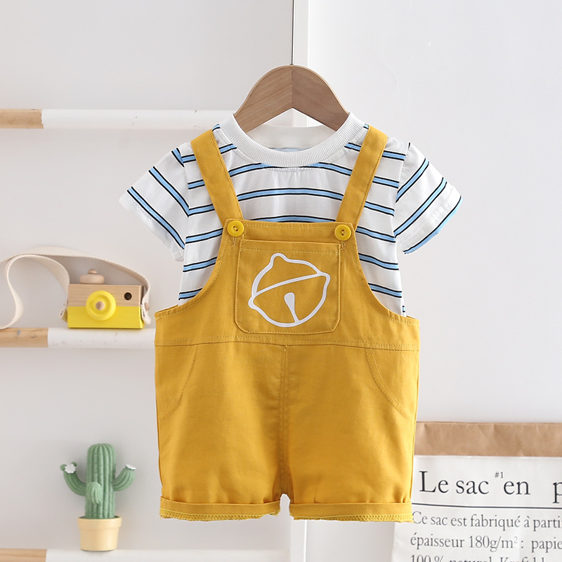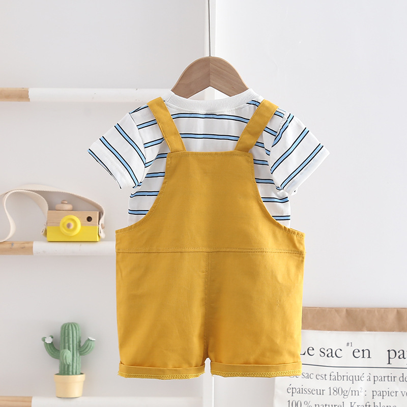 宝宝夏装背带裤男童2025新款洋气韩版套装婴儿小童条纹短袖衣服潮 投诉