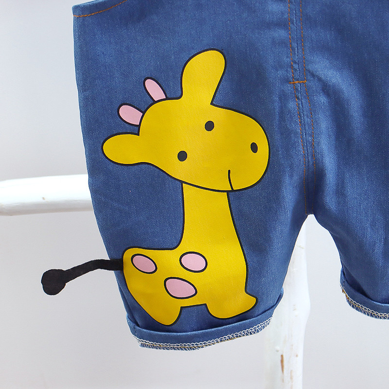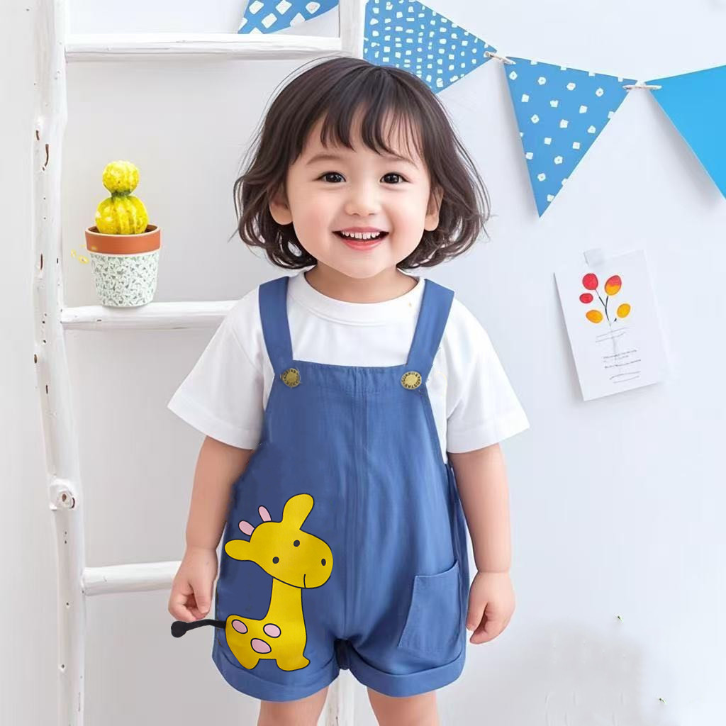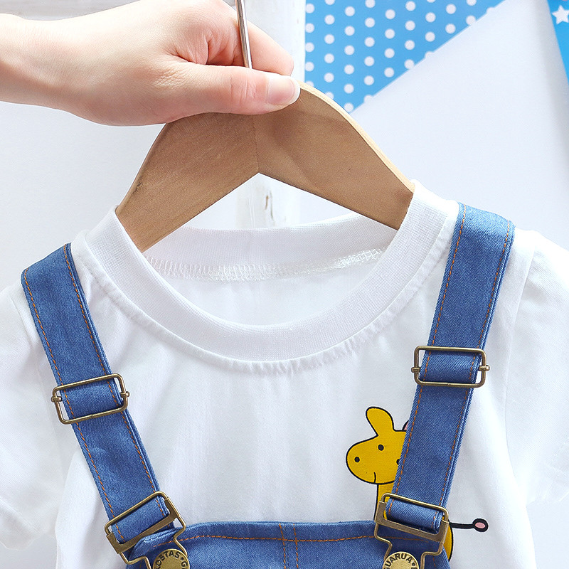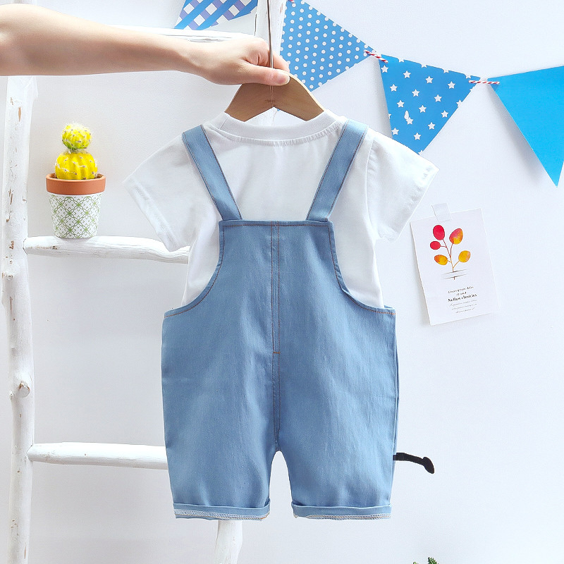 婴儿衣服夏季短袖套装1一3岁男宝宝洋气可爱卡通牛仔背带裤两件套