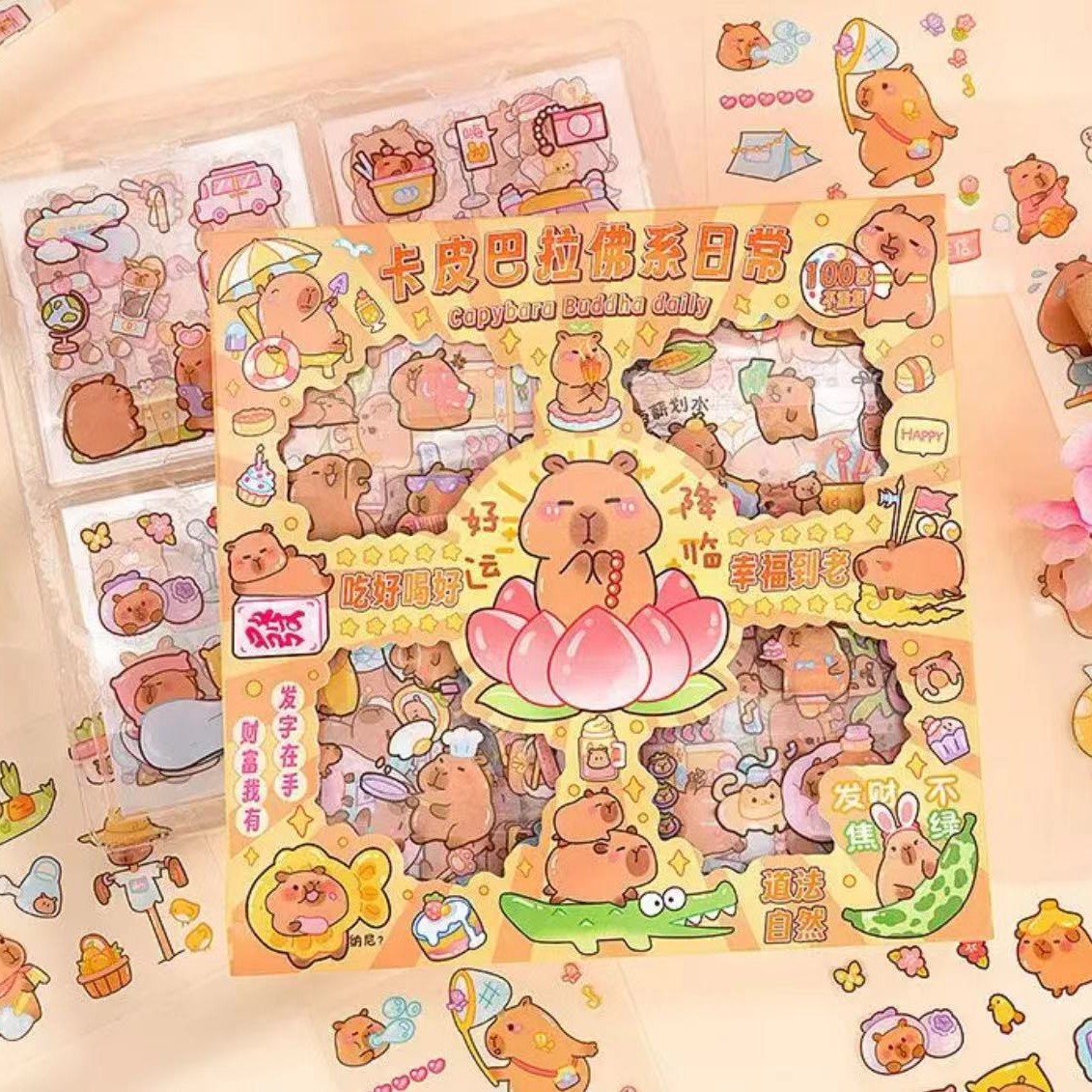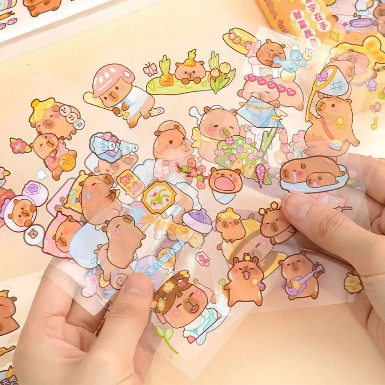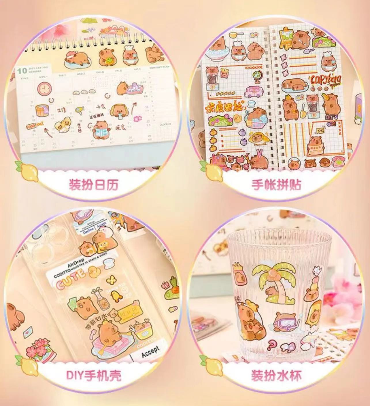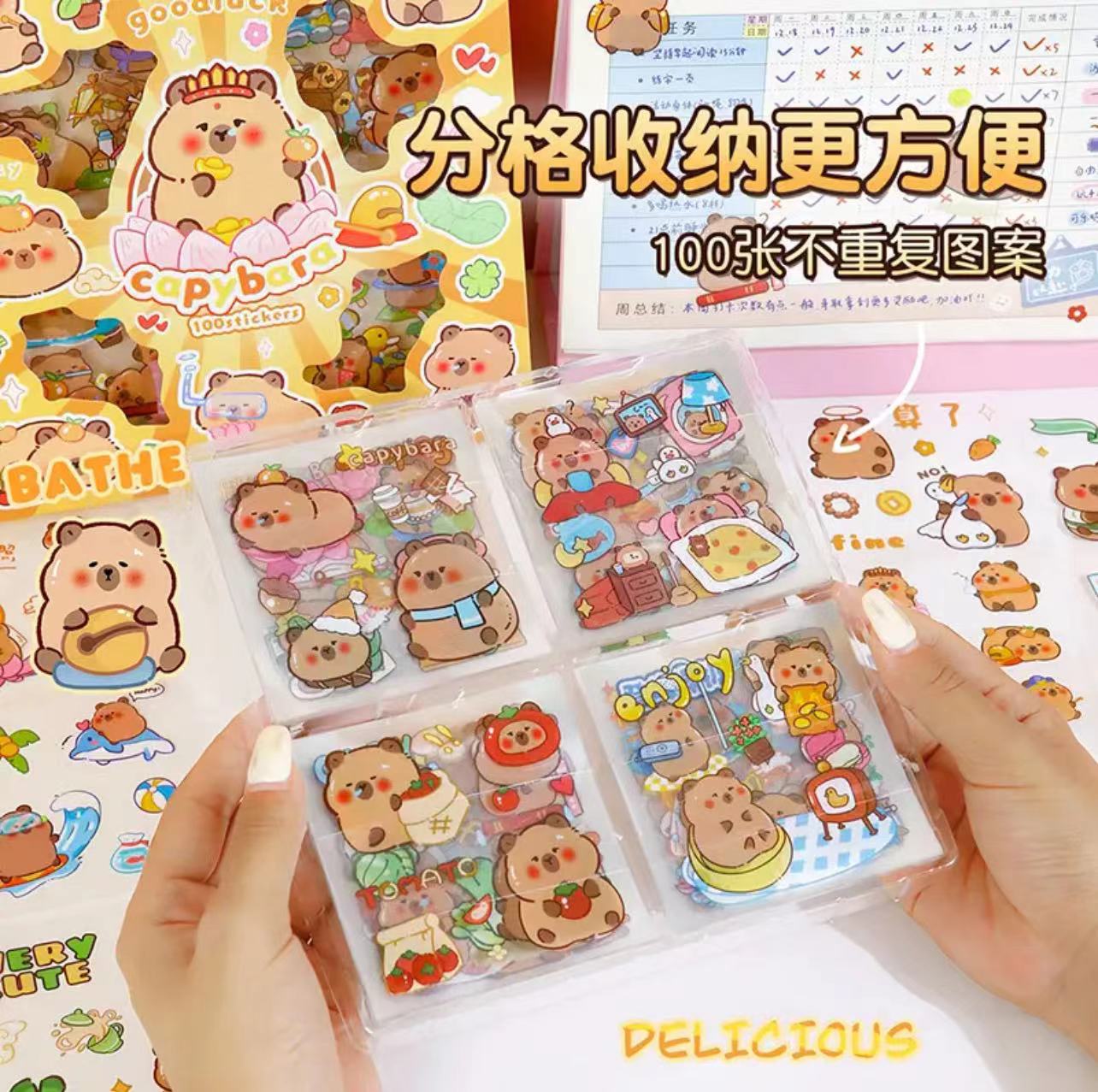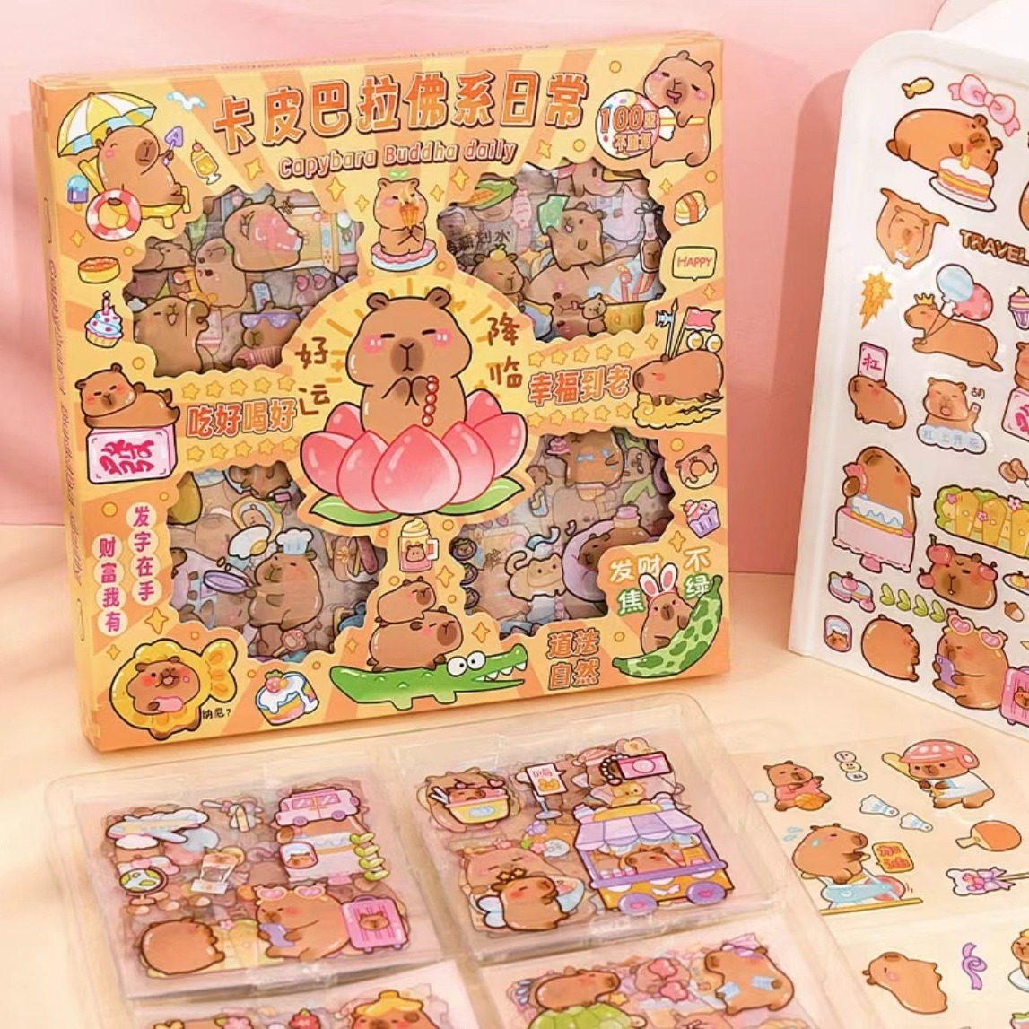 卡皮巴拉贴纸100张手账礼盒卡通水豚手帐贴纸儿童DIY咕卡水杯贴画
