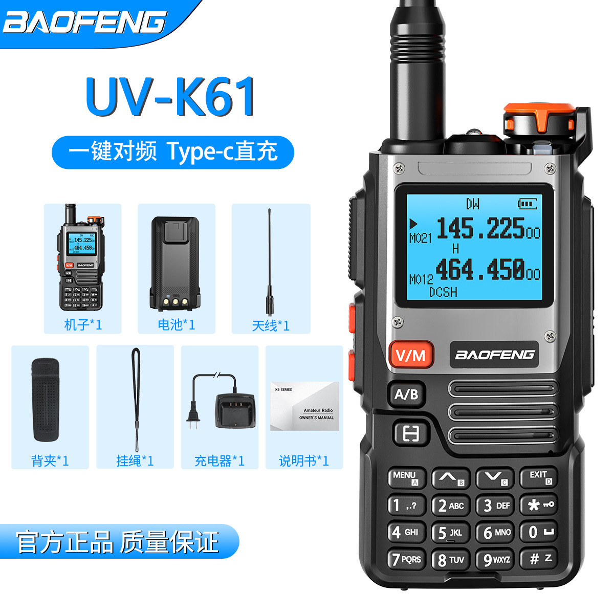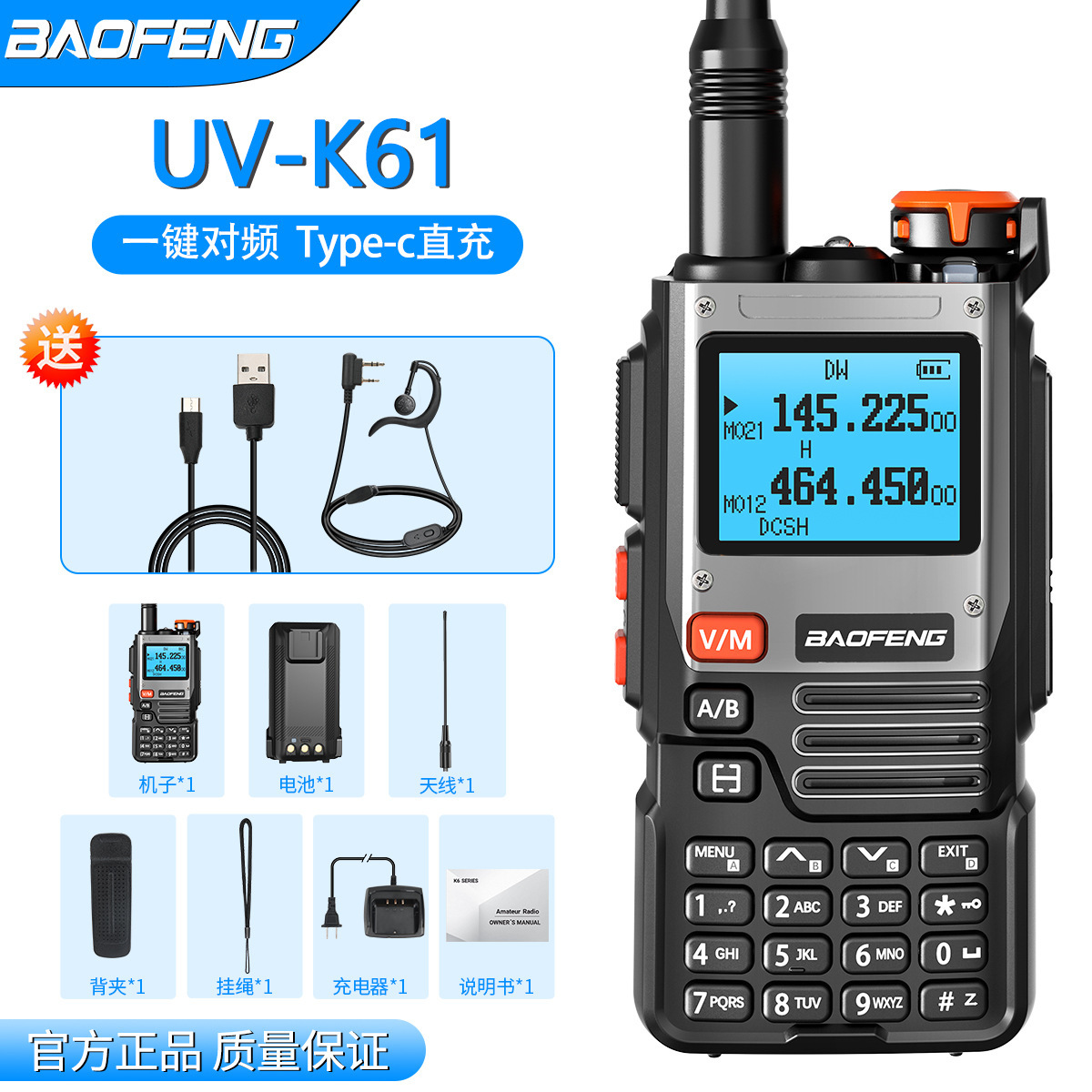 BAOFENG宝锋UV-K61对讲机一键对频中文菜单type-C充自驾游手台