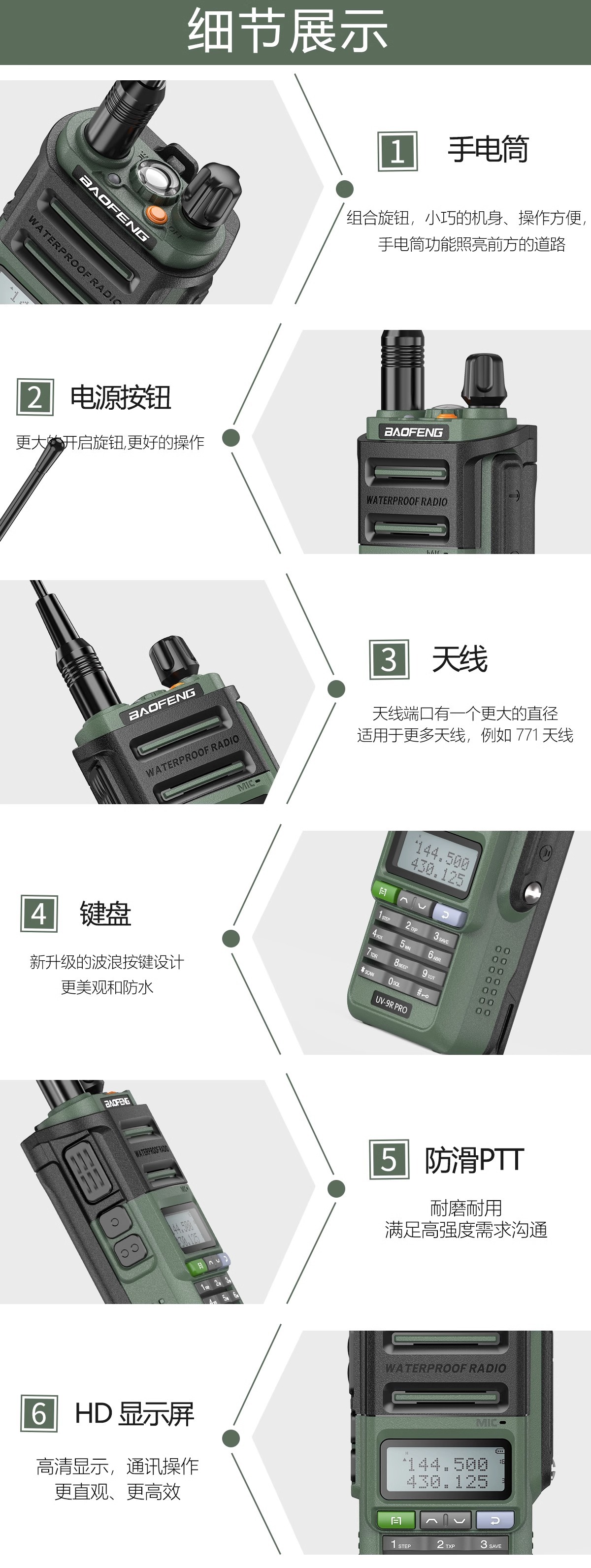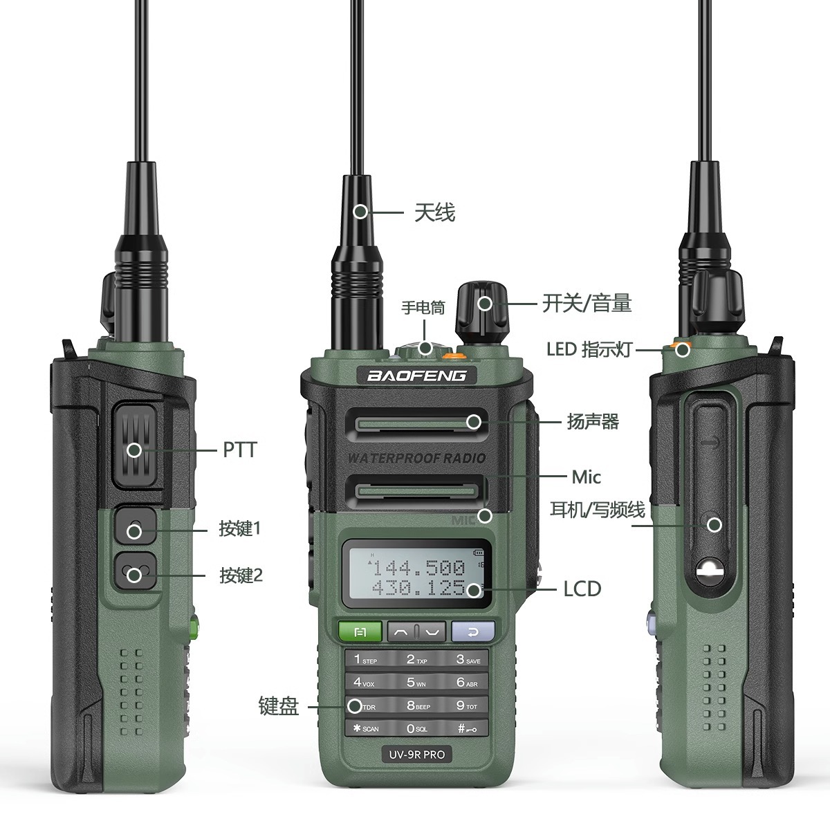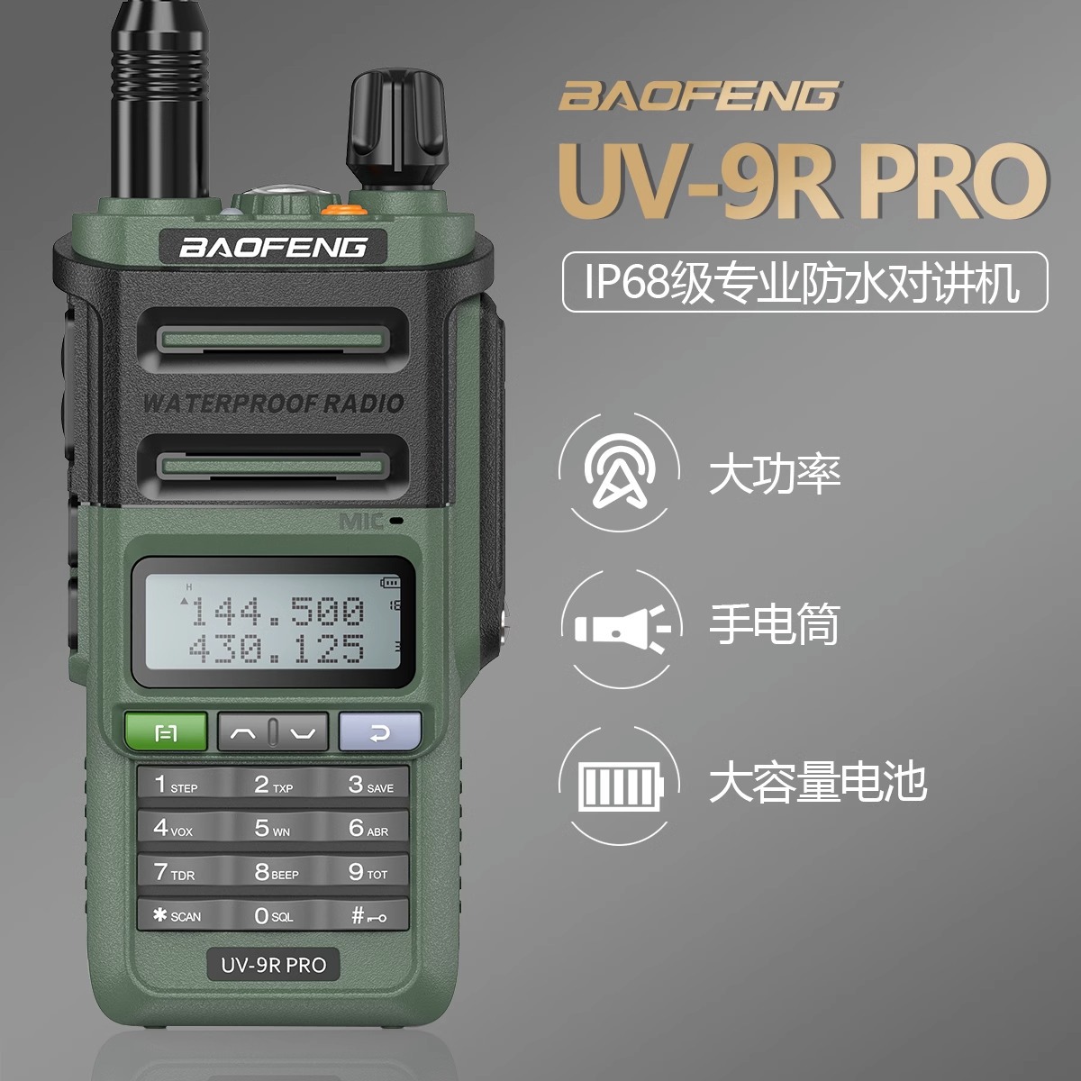 宝锋对讲机UV9R PRO V2防水户外对讲机大功率专业对讲机中英双语
