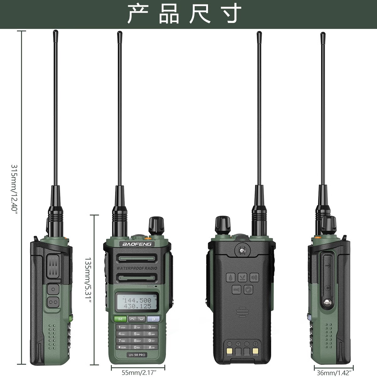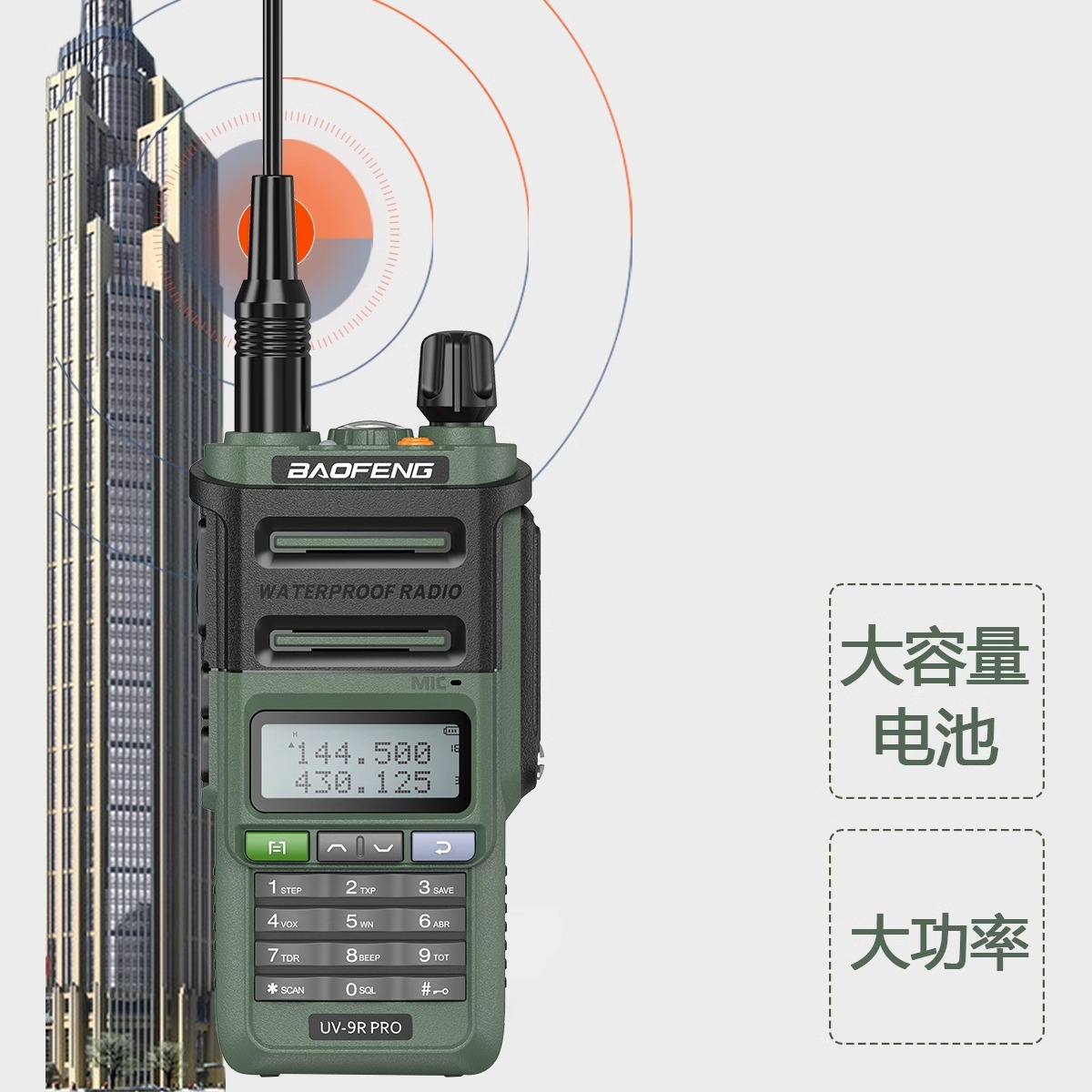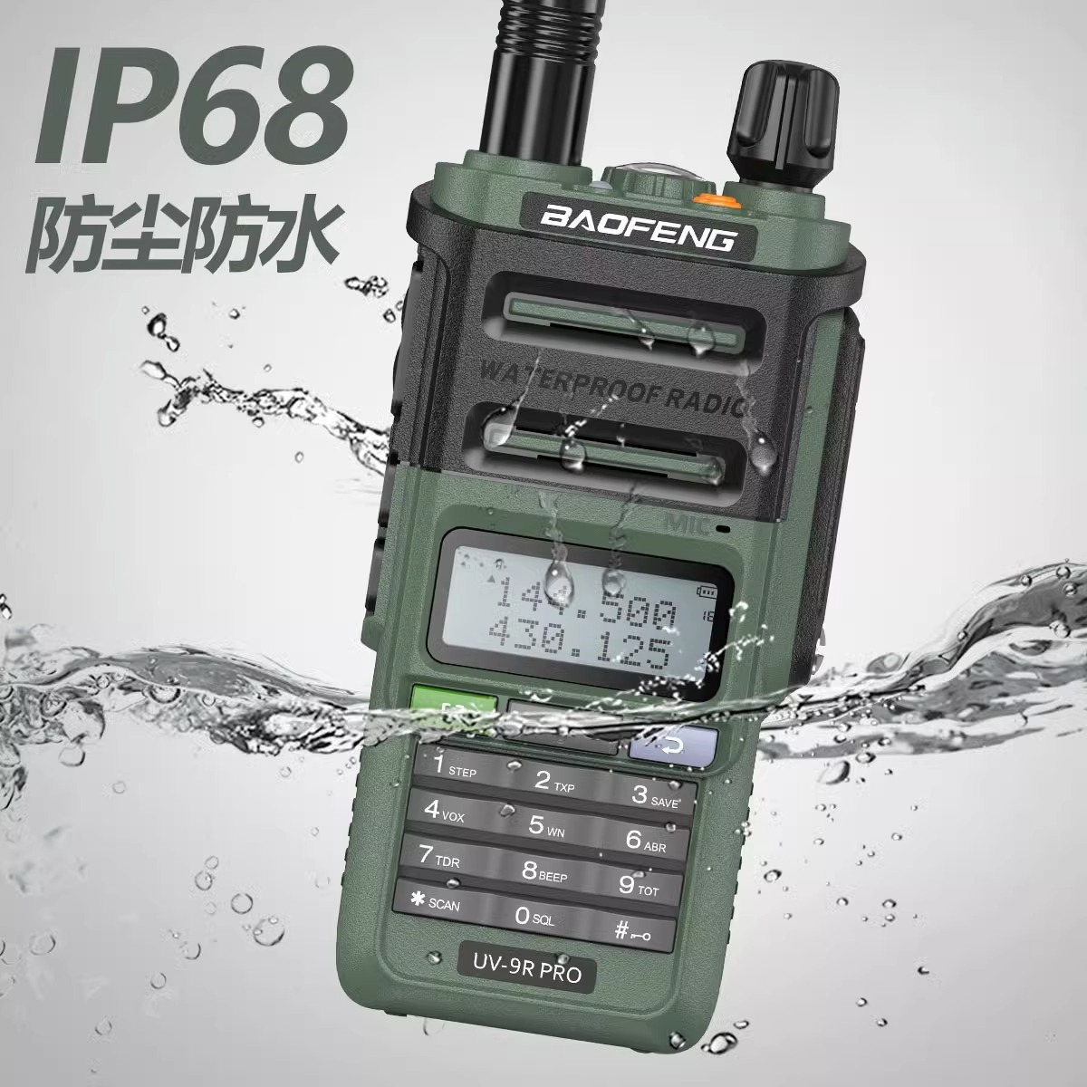 种类: 整机 货号: UV-9R PLUS 品牌: 宝锋-baofeng 频率范围: 136-174/400-520(MHz) 射频输出功率: 20 信道数: 128个 理论通讯距离: 1.5km-3km(3km) 电池类型: 锂电池 是否专利货源: 否 主要销售地区: 非洲,欧洲,南美,东南亚,北美,东北亚,