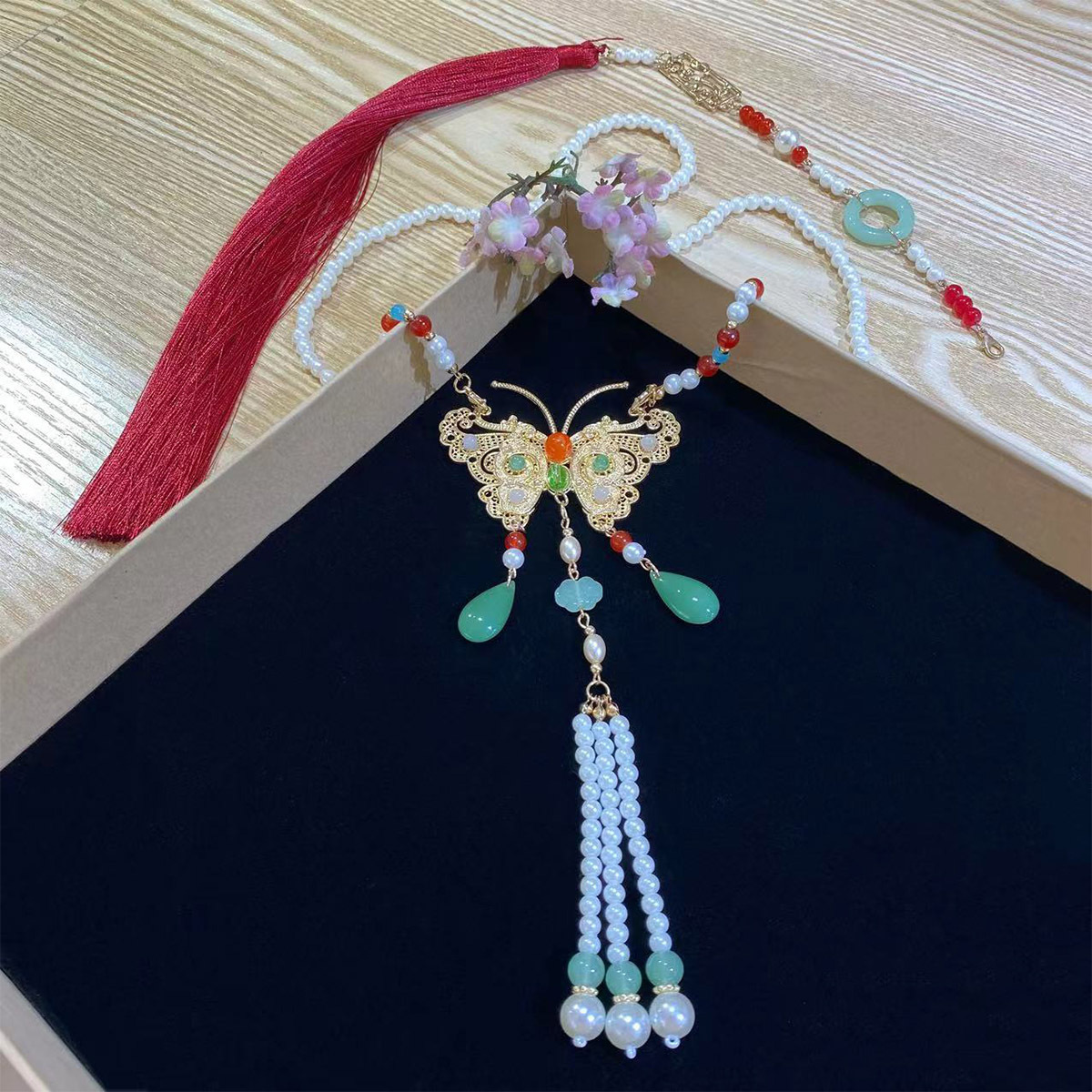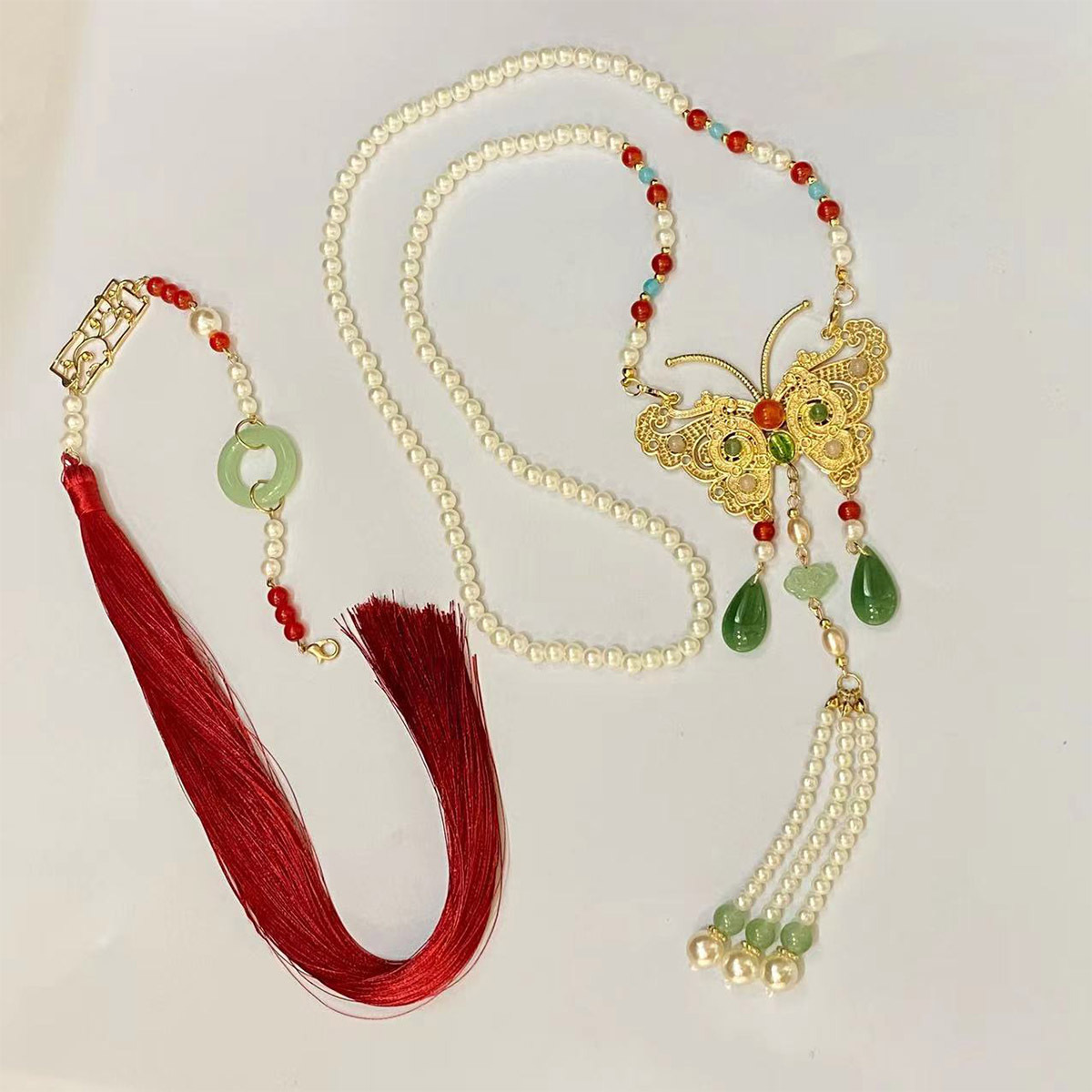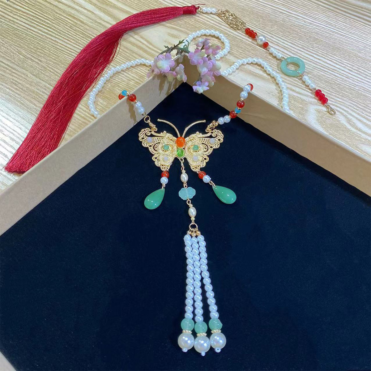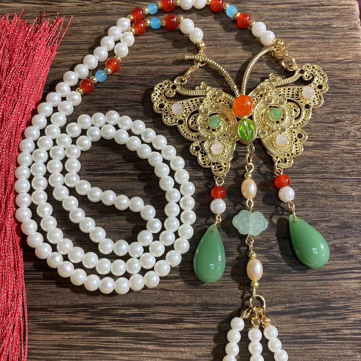 蝴蝶璎珞项链马面裙长款项链古风汉服吊坠配饰长流苏背云毛衣链 投诉