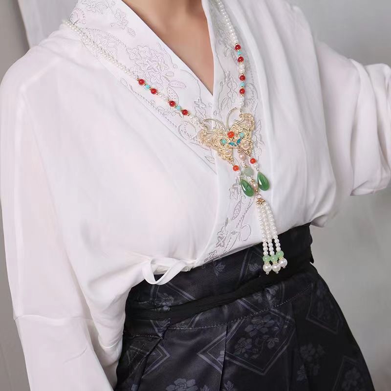 蝴蝶璎珞项链马面裙长款项链古风汉服吊坠配饰长流苏背云毛衣链