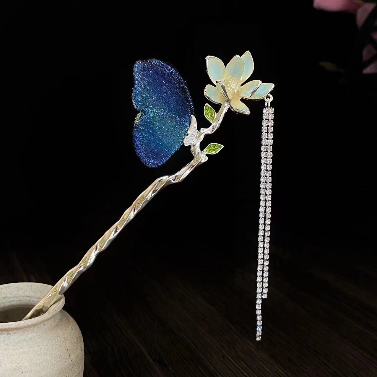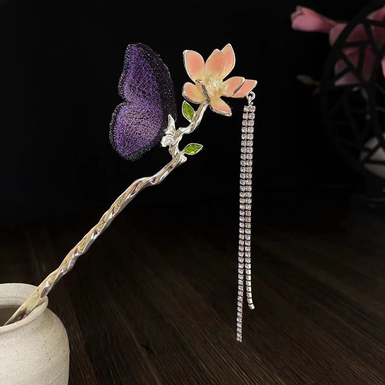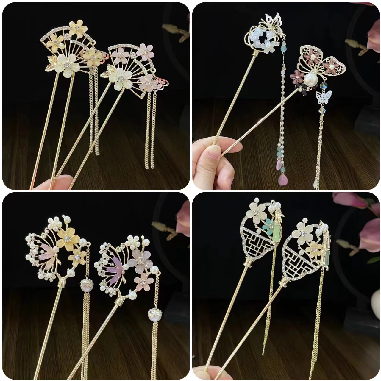 新中式扇形发簪女花朵流苏发钗配饰古风盘发簪子日常现代简约发饰 投诉