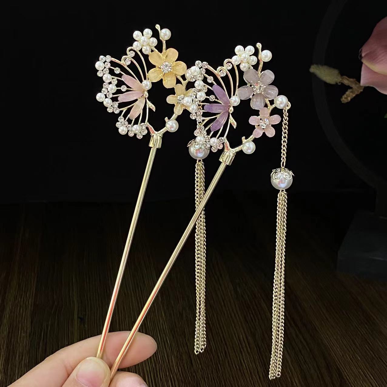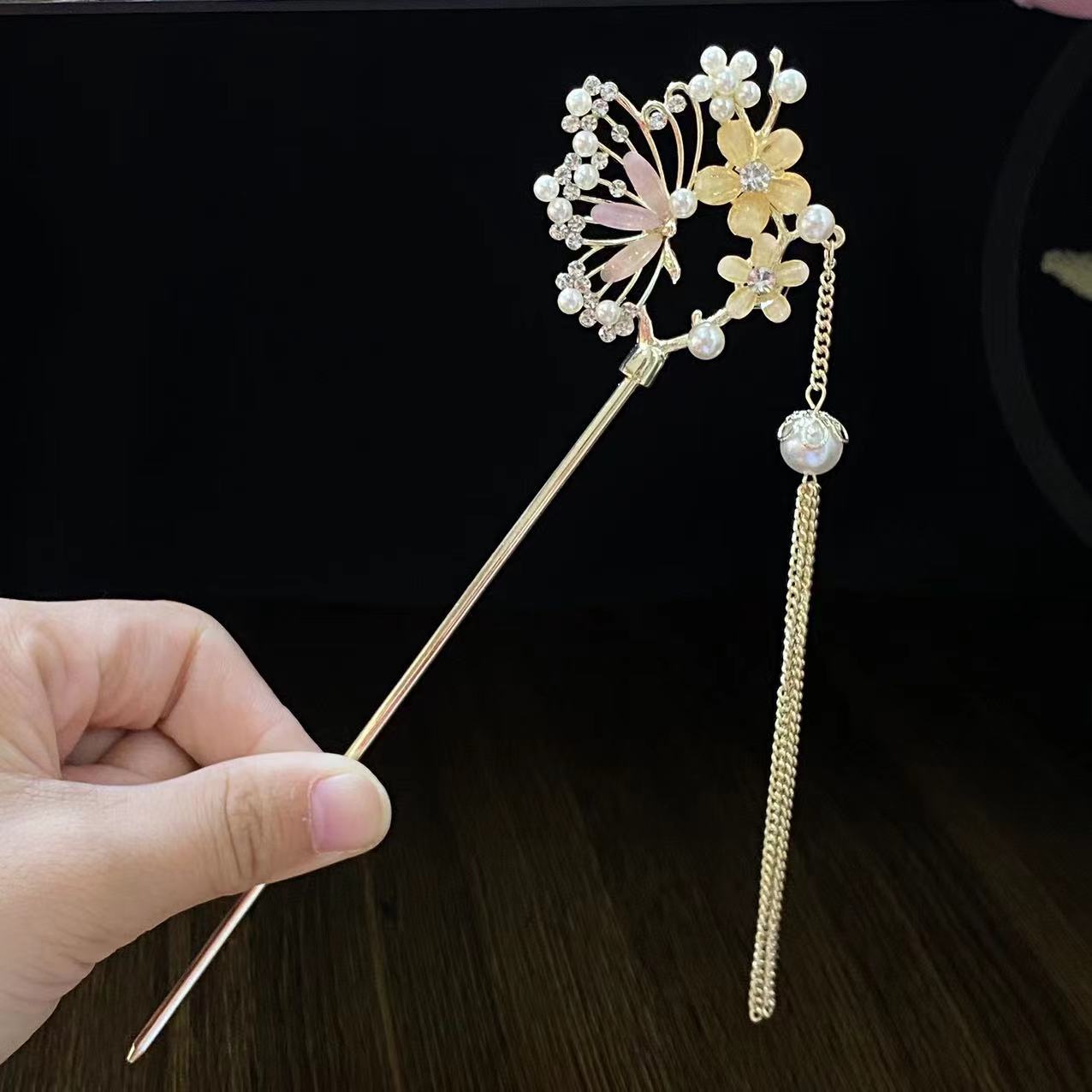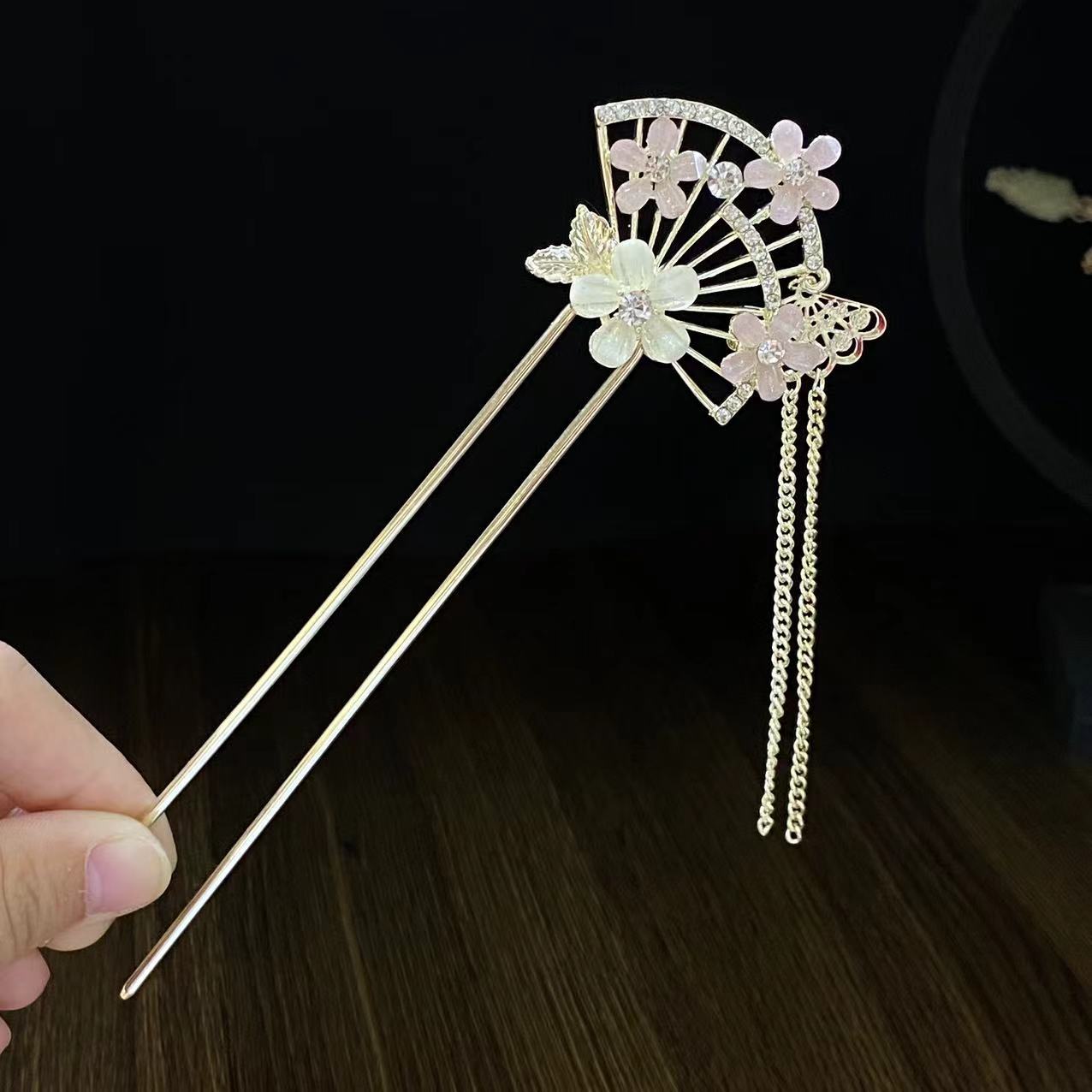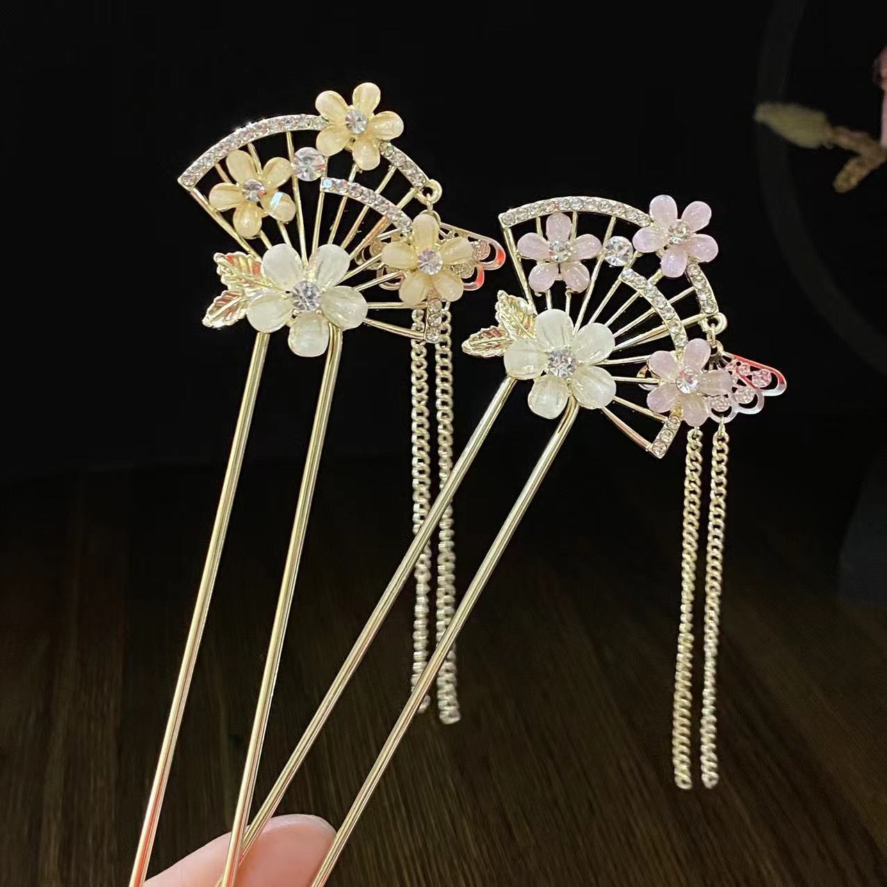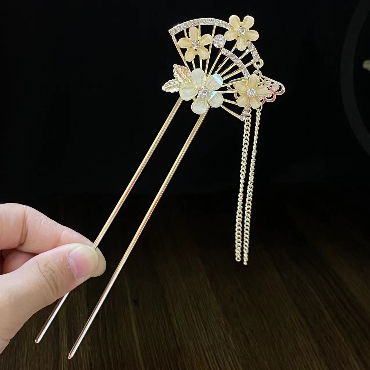 新中式扇形发簪女花朵流苏发钗配饰古风盘发簪子日常现代简约发饰