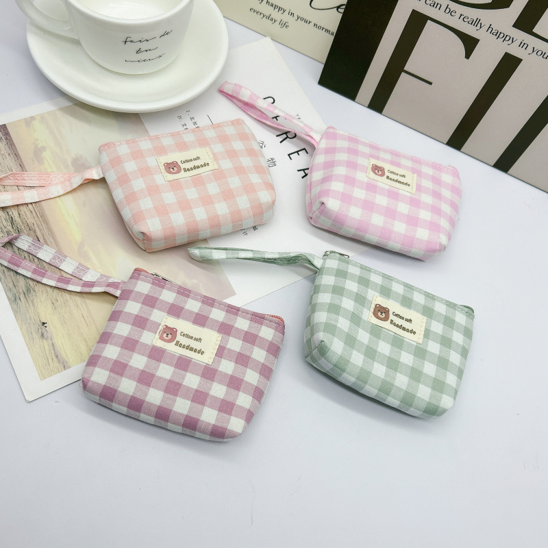 新款格子零钱包手拎手腕包硬币小钱包钥匙包学生简约包包厂家批发