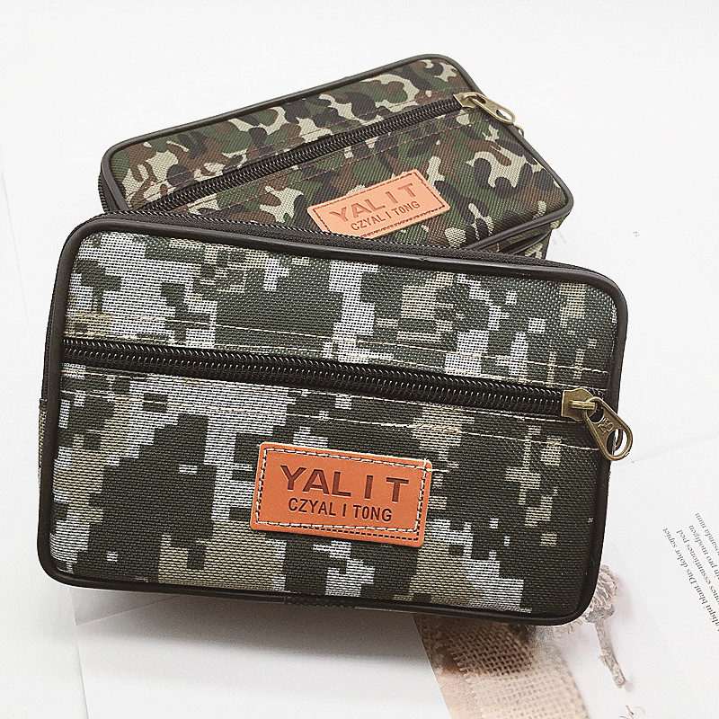 新款迷彩平口手机包横帆布穿皮带腰包工地干活挂包零钱包男中老年