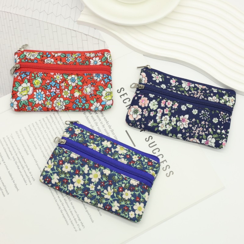 新款零钱包双拉链硬币包手拿小钱包碎花田园风中老年钥匙包厂家