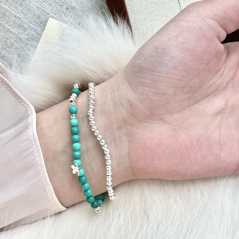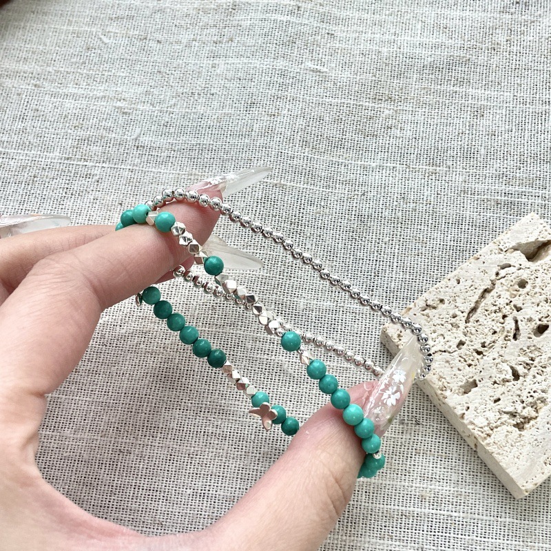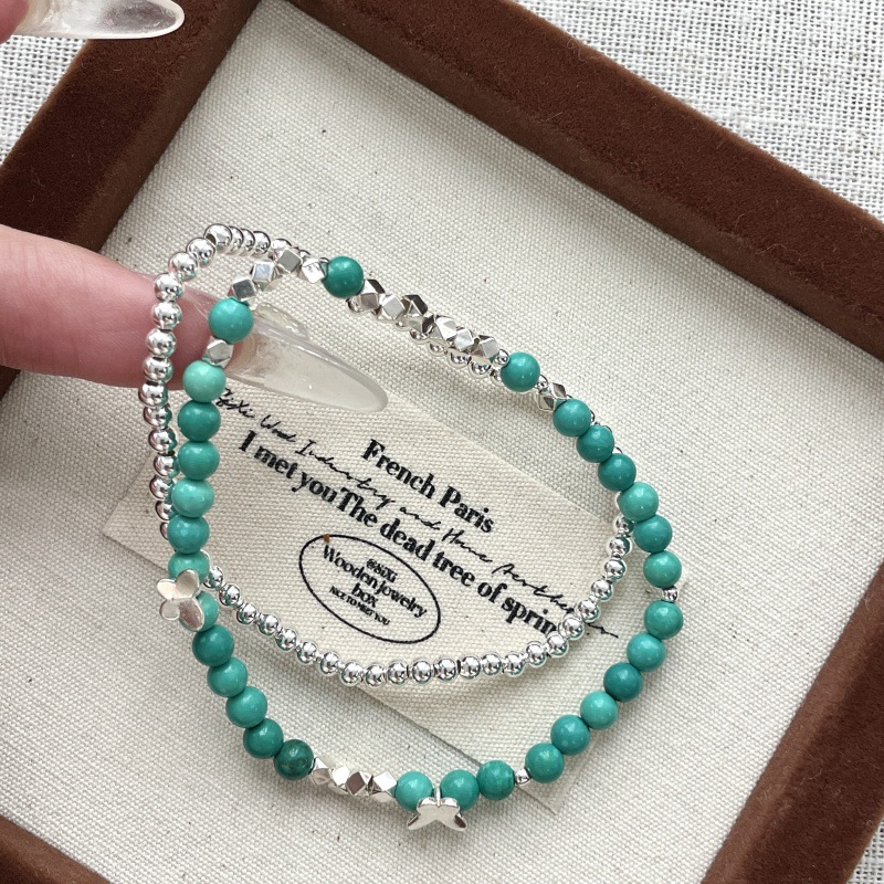 先泰S925银天然绿松石手串纯银蝴蝶原创设计小众轻奢仙女ins风
