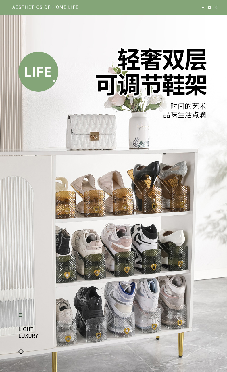 收纳鞋架双层鞋托三档可调节家用宿舍神器整理拖鞋鞋柜鞋子置物架 English | 投诉