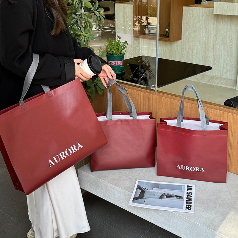 安可拉红手提袋服装店无纺布购物带衣服包装女装打包宣传袋子高档