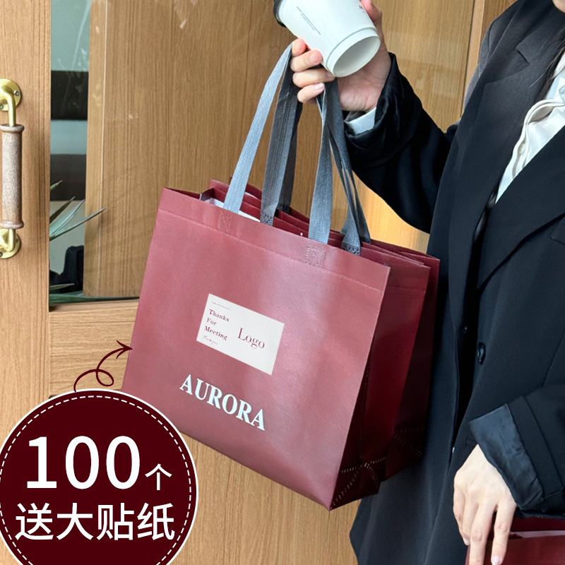 安可拉红手提袋服装店无纺布购物带衣服包装女装打包宣传袋子高档 投诉