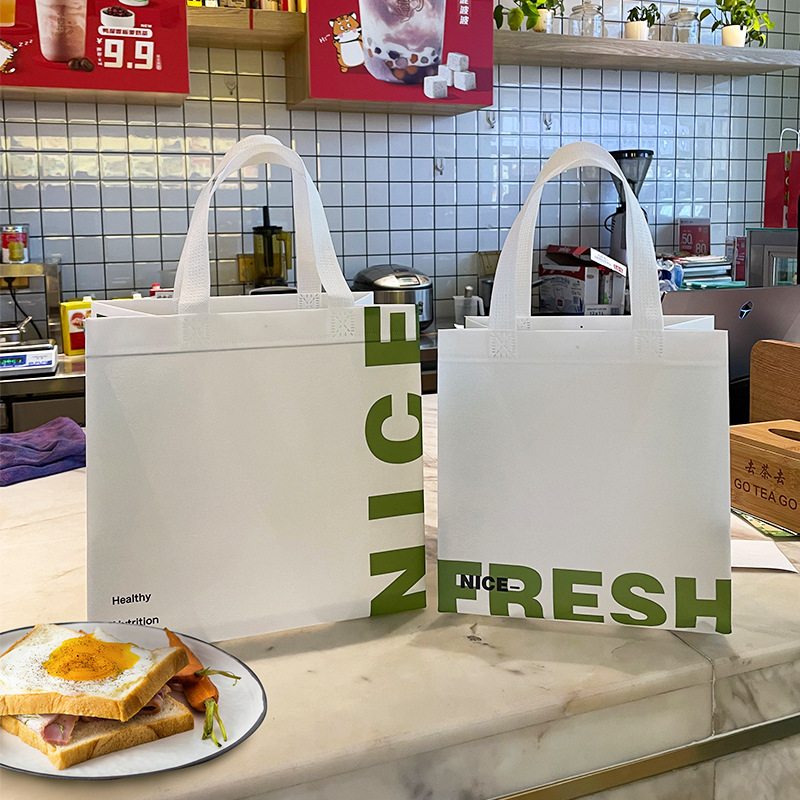轻食沙拉外卖打包袋简约小清新便当无纺布手提袋快餐外送水果简餐