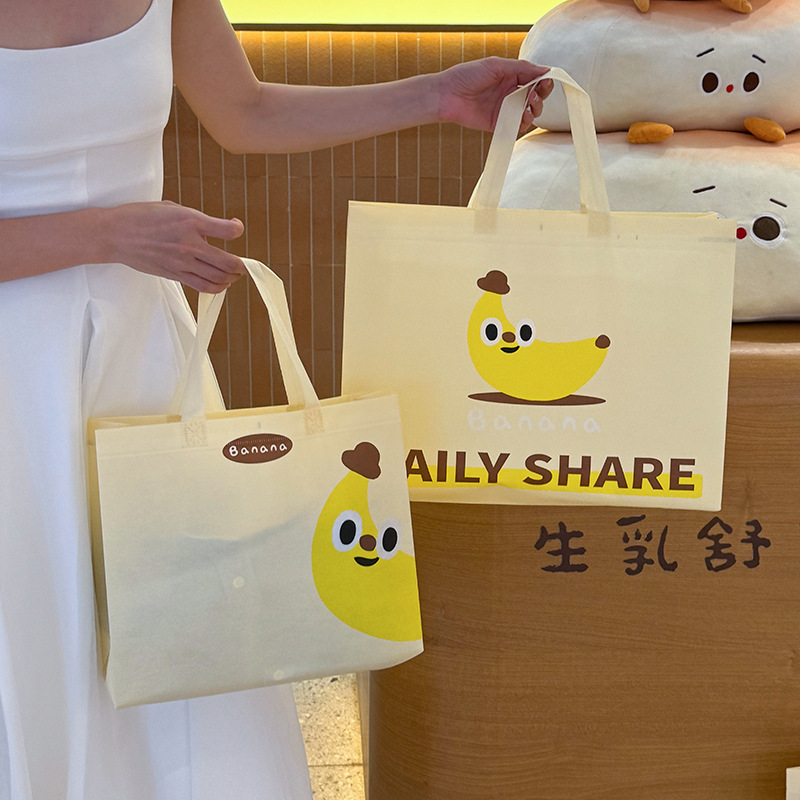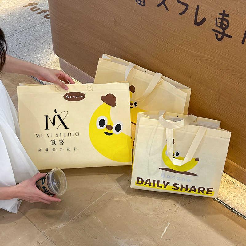 卡通香蕉黄无纺布手提袋覆膜防水服装袋礼物包装袋定童女制装批发