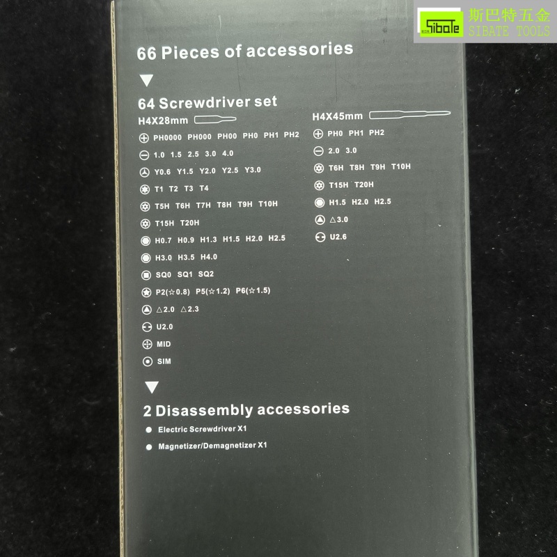 批头*64,SUB充电线*1,加磁器*1,电动螺丝刀手柄*1 |