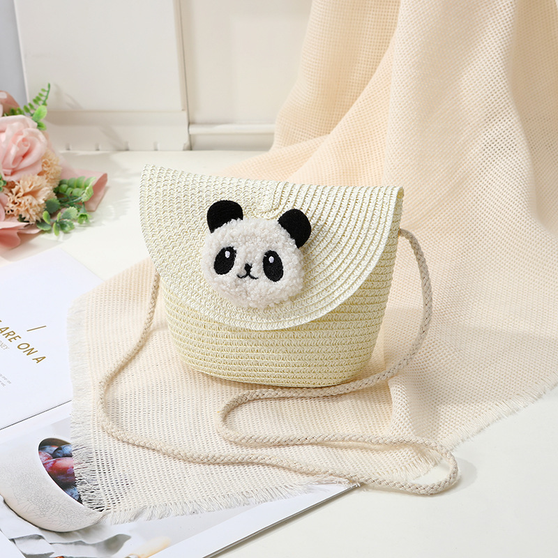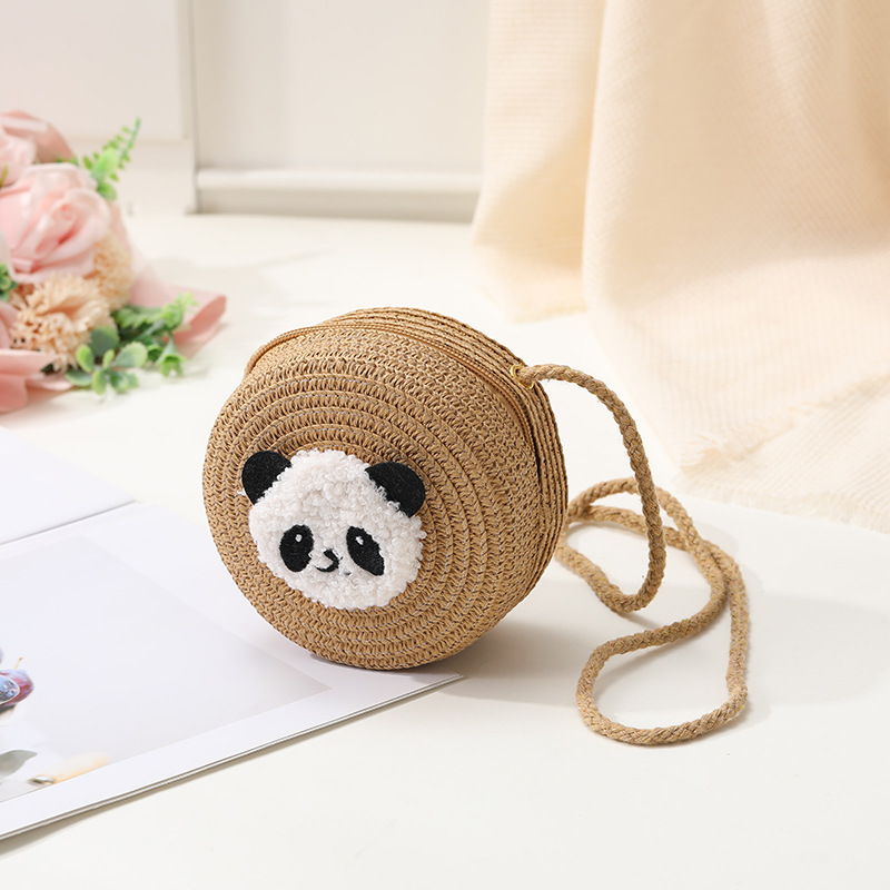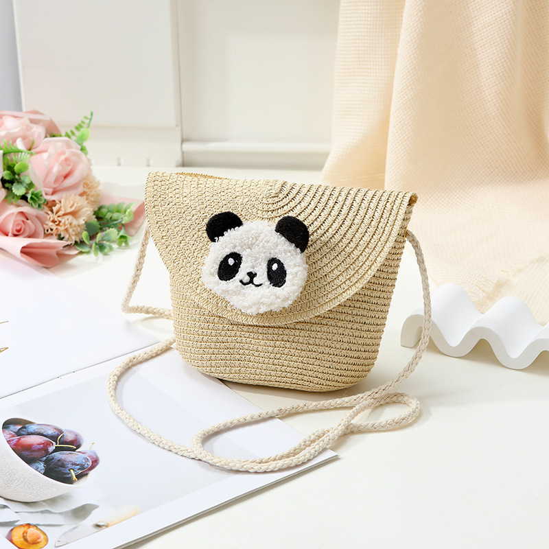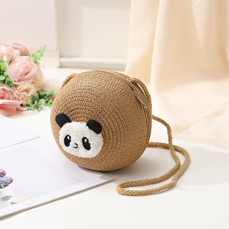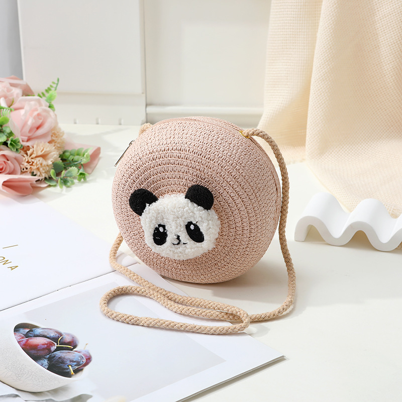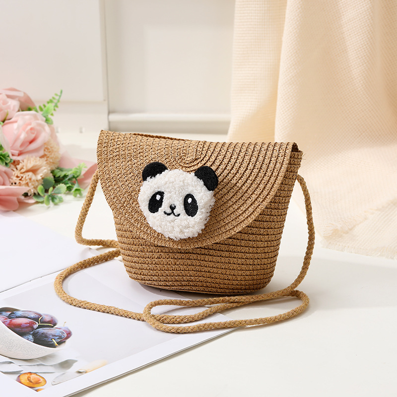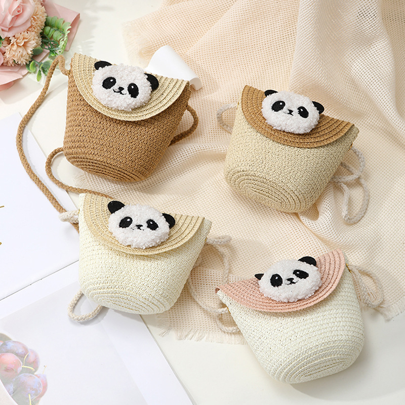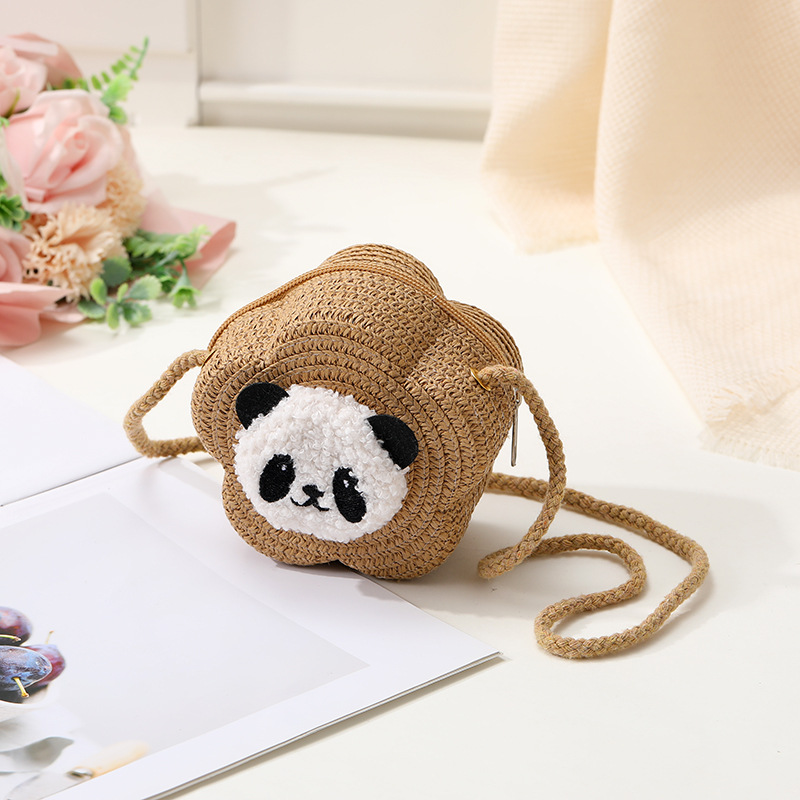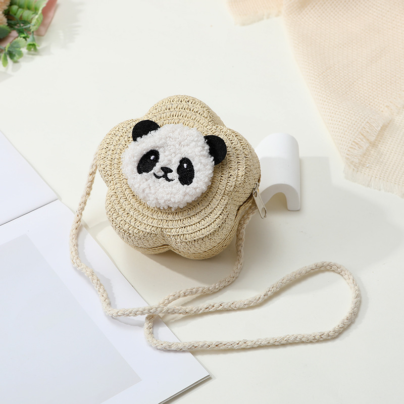 小熊猫草包编织包2025新款夏季沙滩草编包女迷你可爱手机斜挎小包