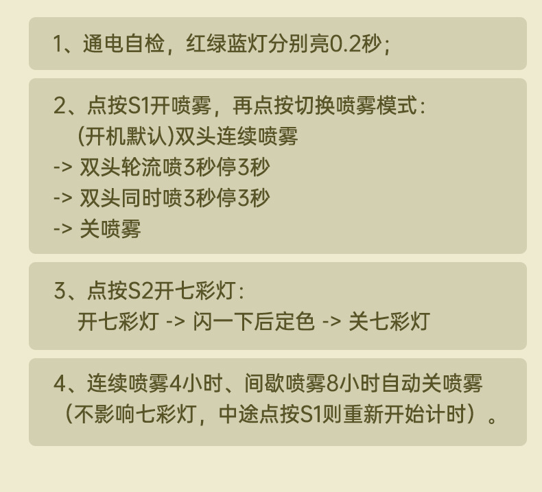 功 能 :双喷雾 七彩氛围灯