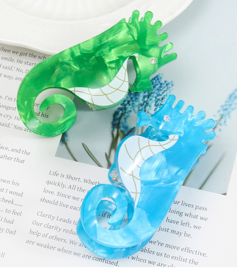 宝光喷绘海洋动物花色抓夹女生鲨鱼夹头发抓气质复古PVC发卡头饰