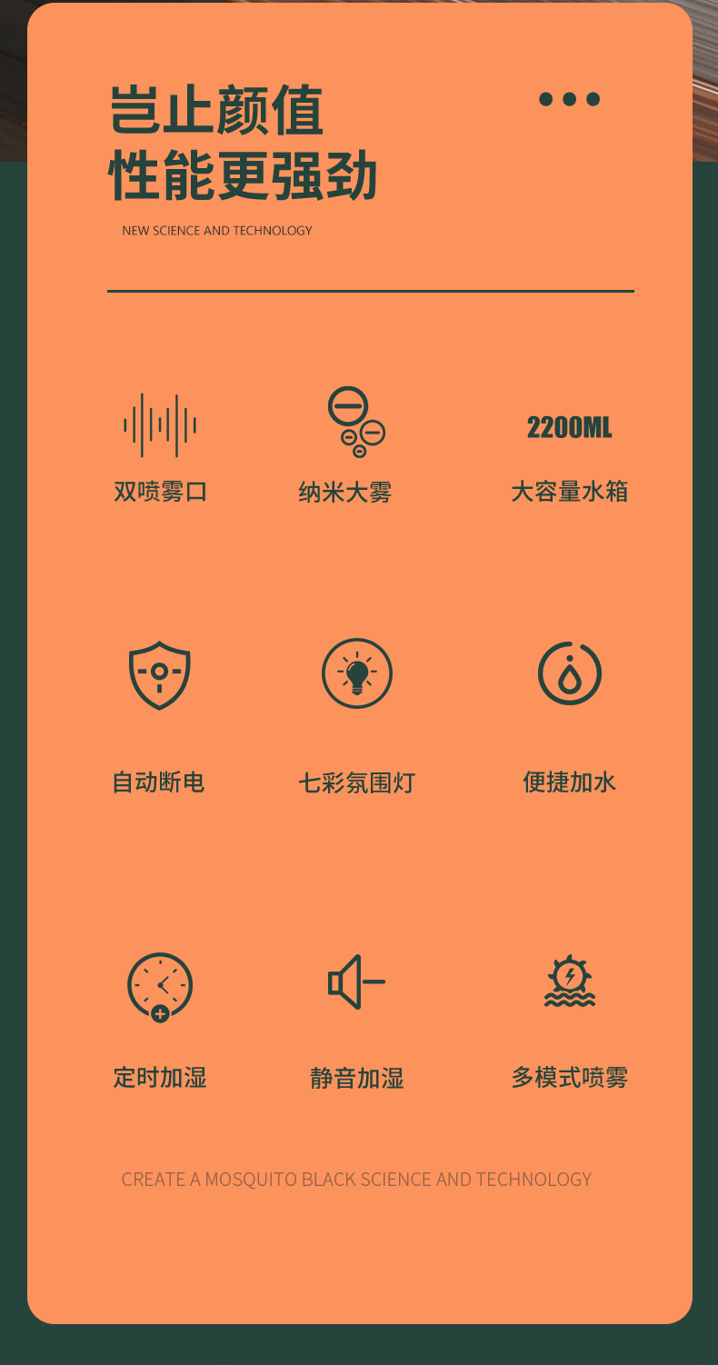 【产品名称】2.2升双喷加湿器