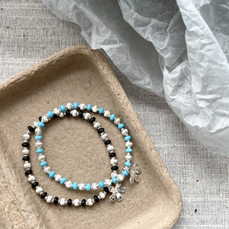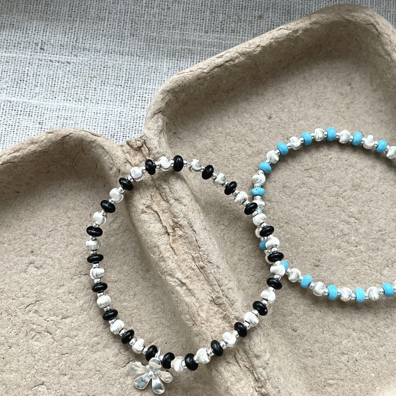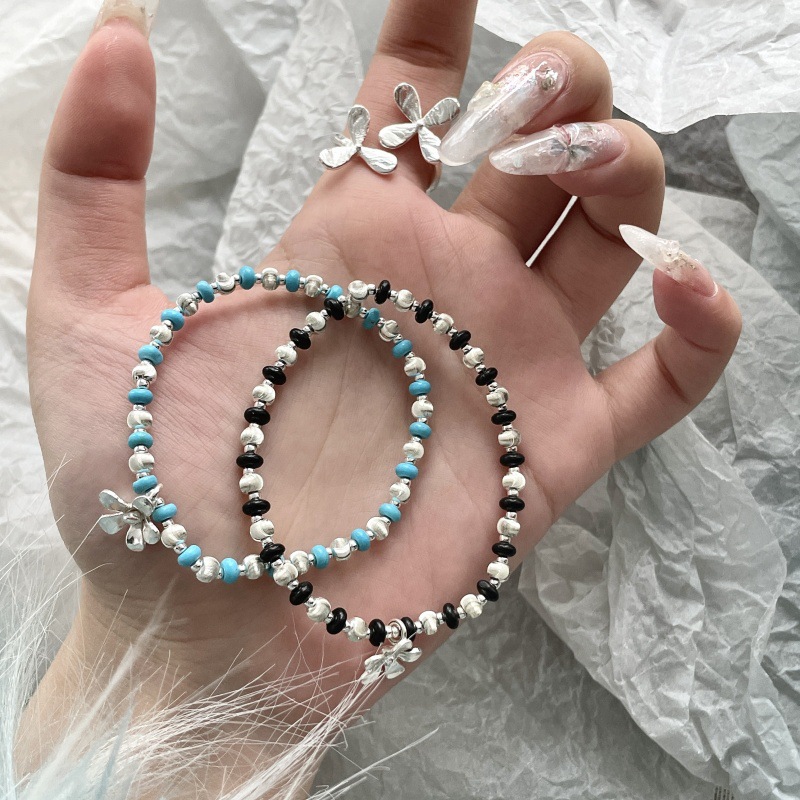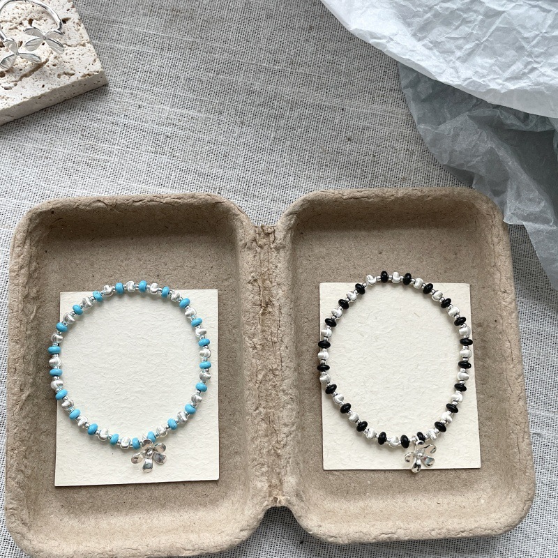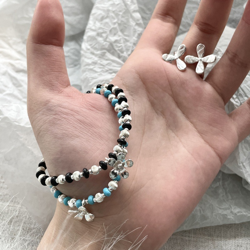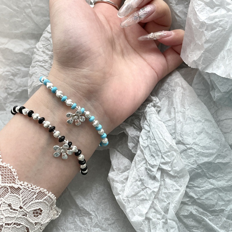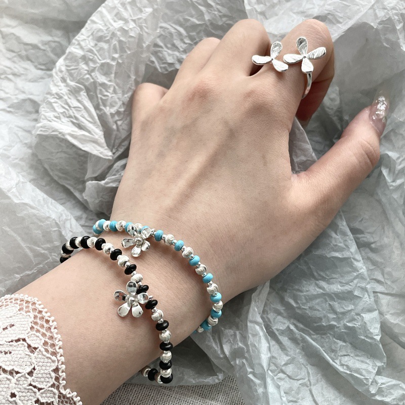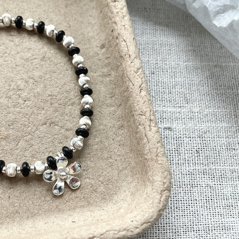 先泰S925银原创纯银拉丝猫眼雏菊手链叠戴双色轻奢小众ins少女风