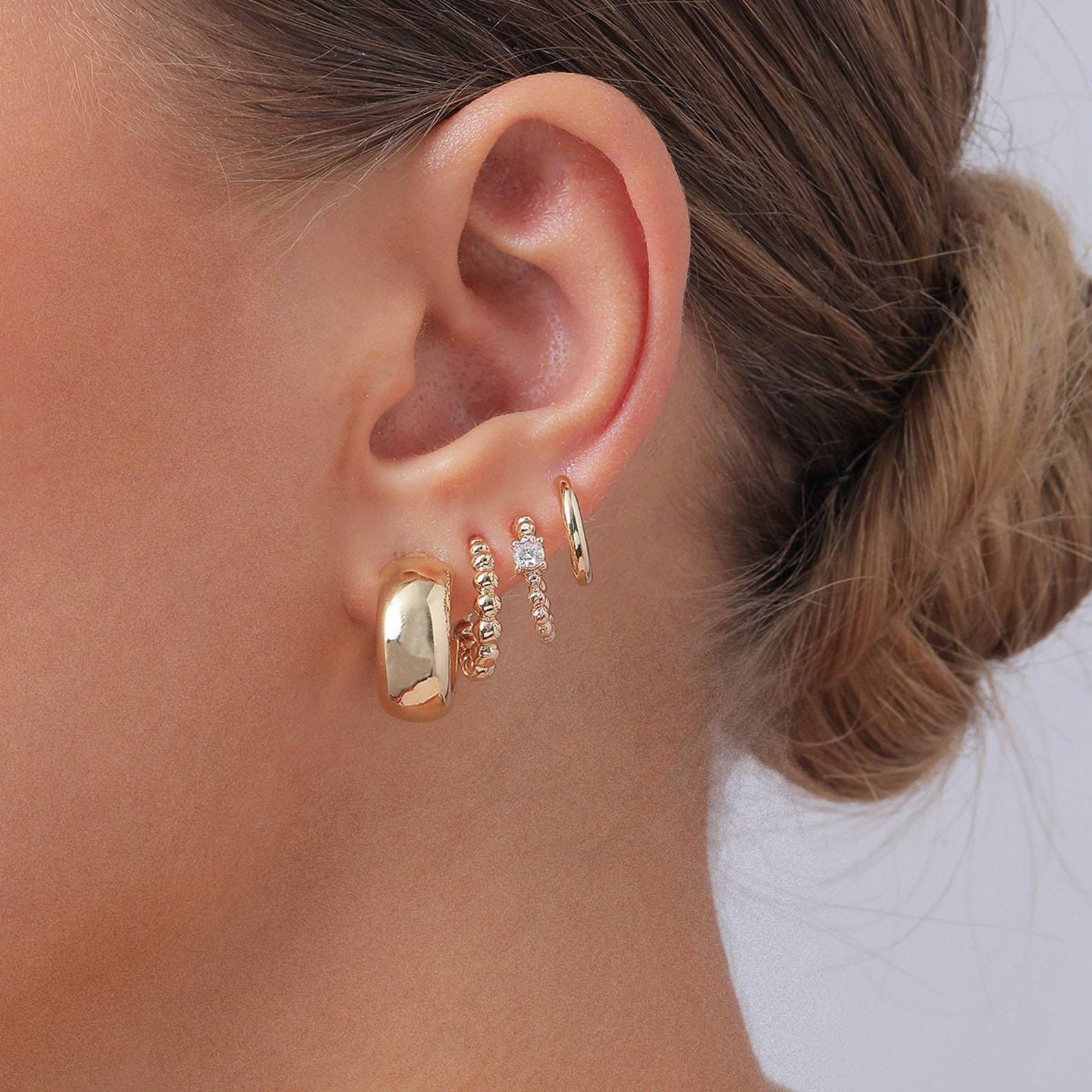 欧美热销港风复古麻花设计感气质耳扣小众时尚百搭名媛耳环套装女 English | 投诉