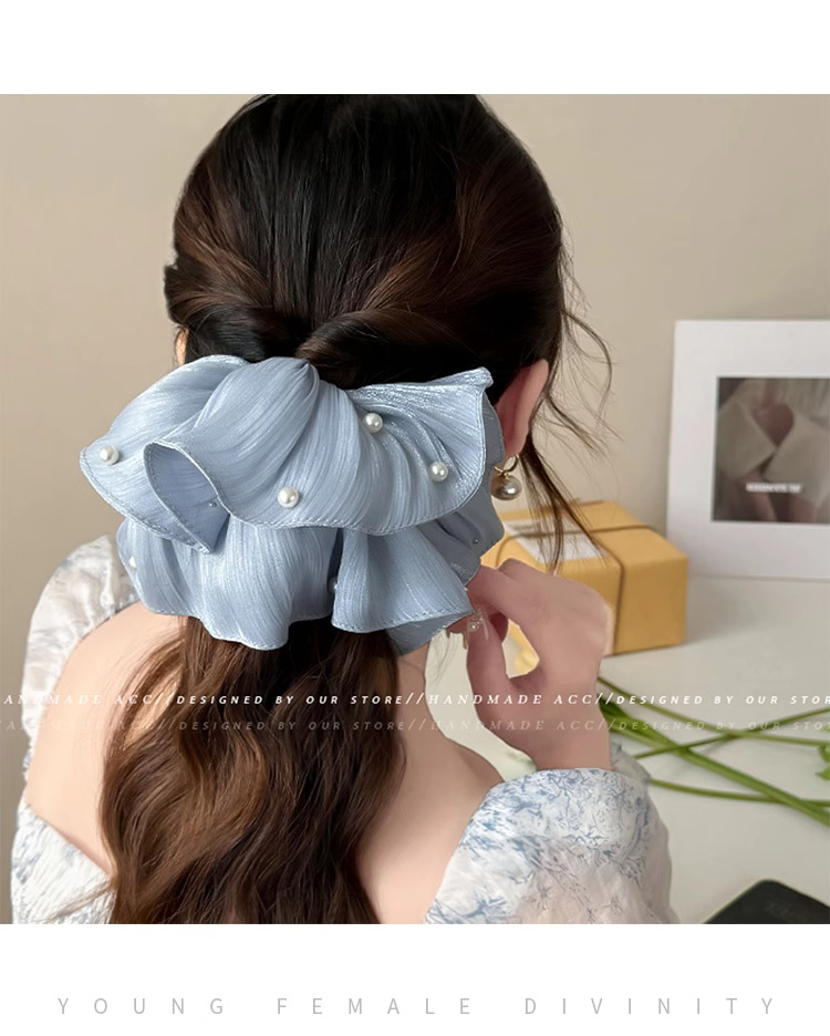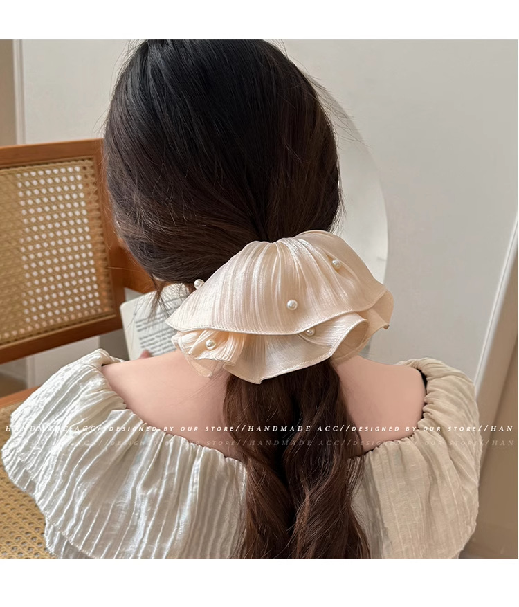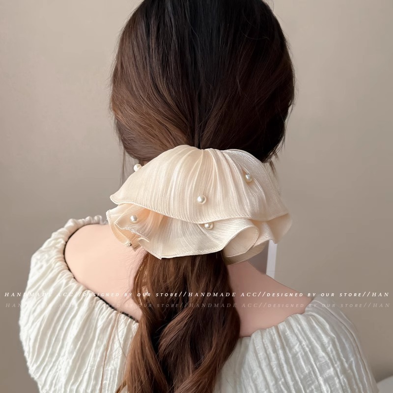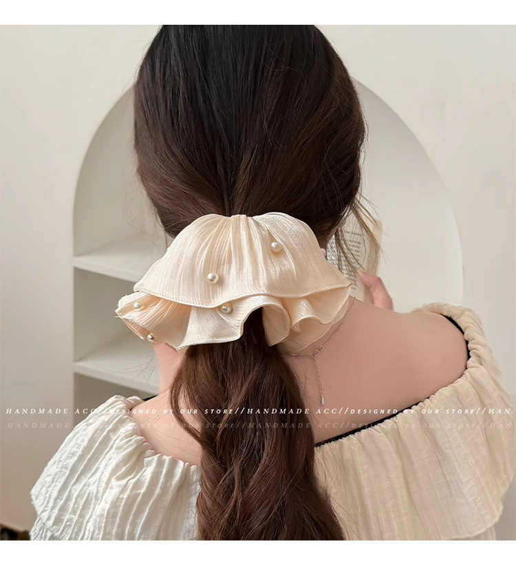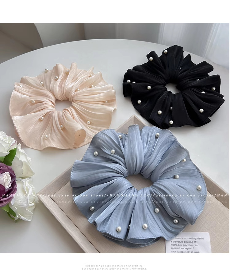 韩系发饰头绳褶皱大肠圈珍珠头花大号珍珠大肠圈 English | 投诉