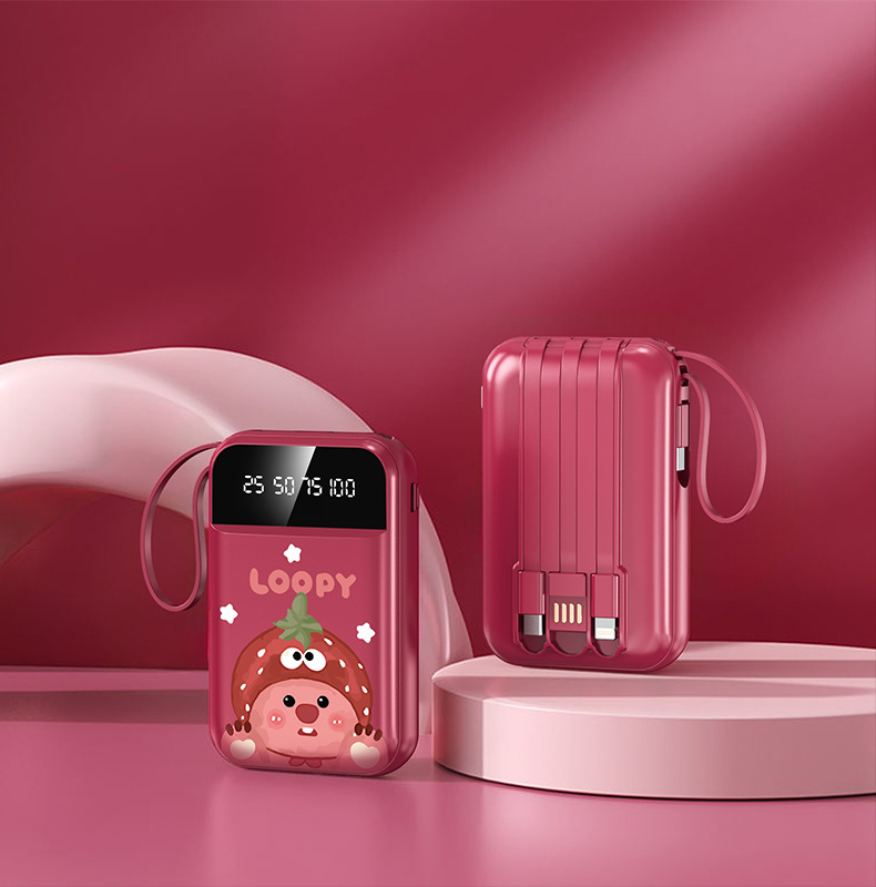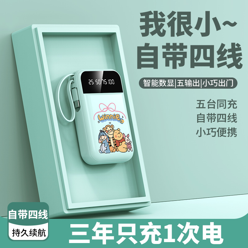 新款卡通自带线充电宝大容量迷你便携带移动电源礼品印制logo图案