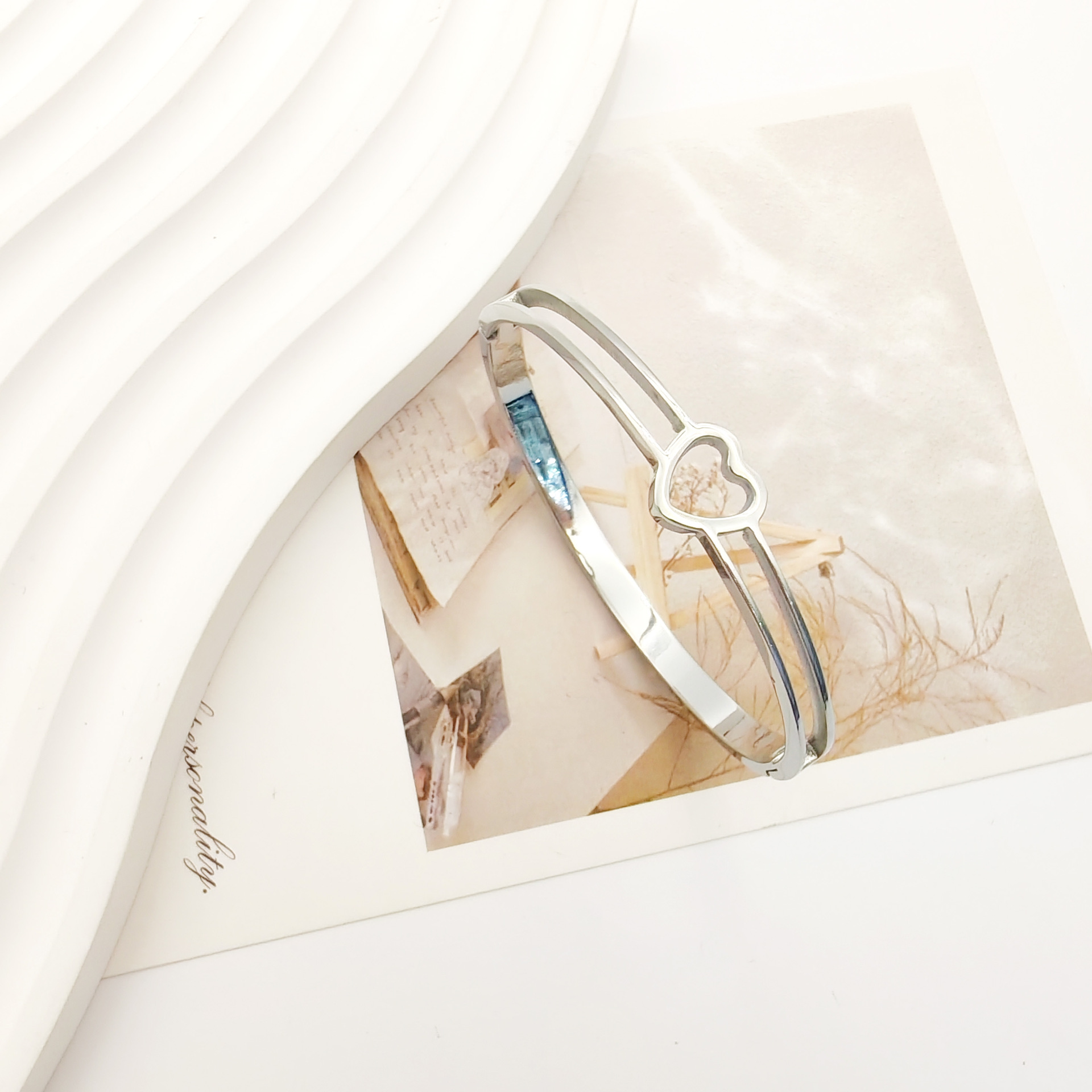 跨境批发不锈钢手镯男女款高级感不掉色饰品光面爱心钛钢手镯