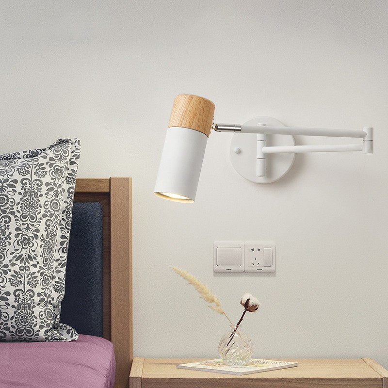 北欧卧室摇臂壁灯日式客厅创意伸缩长杆长臂折叠床头墙壁阅读墙灯