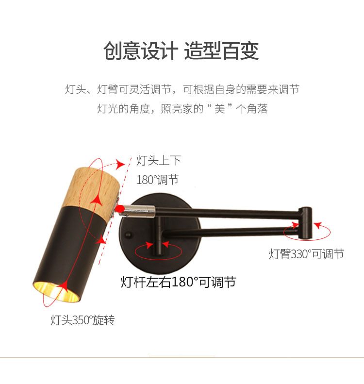 北欧卧室摇臂壁灯日式客厅创意伸缩长杆长臂折叠床头墙壁阅读墙灯 投诉