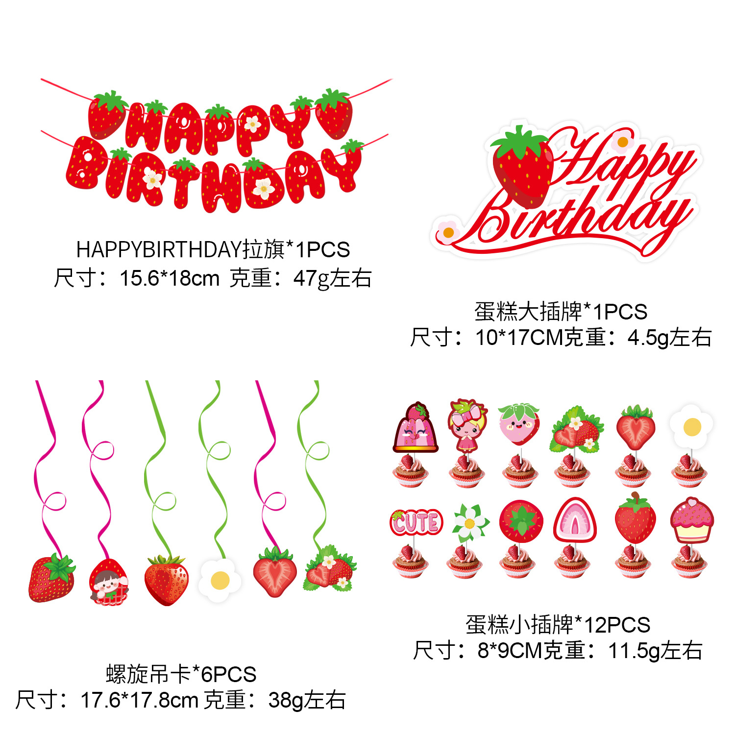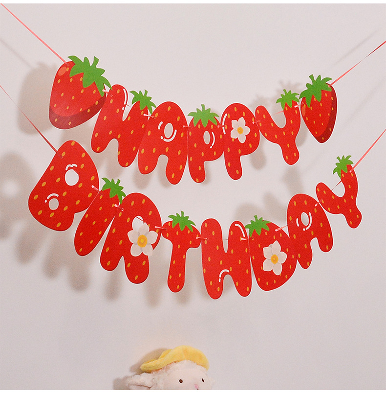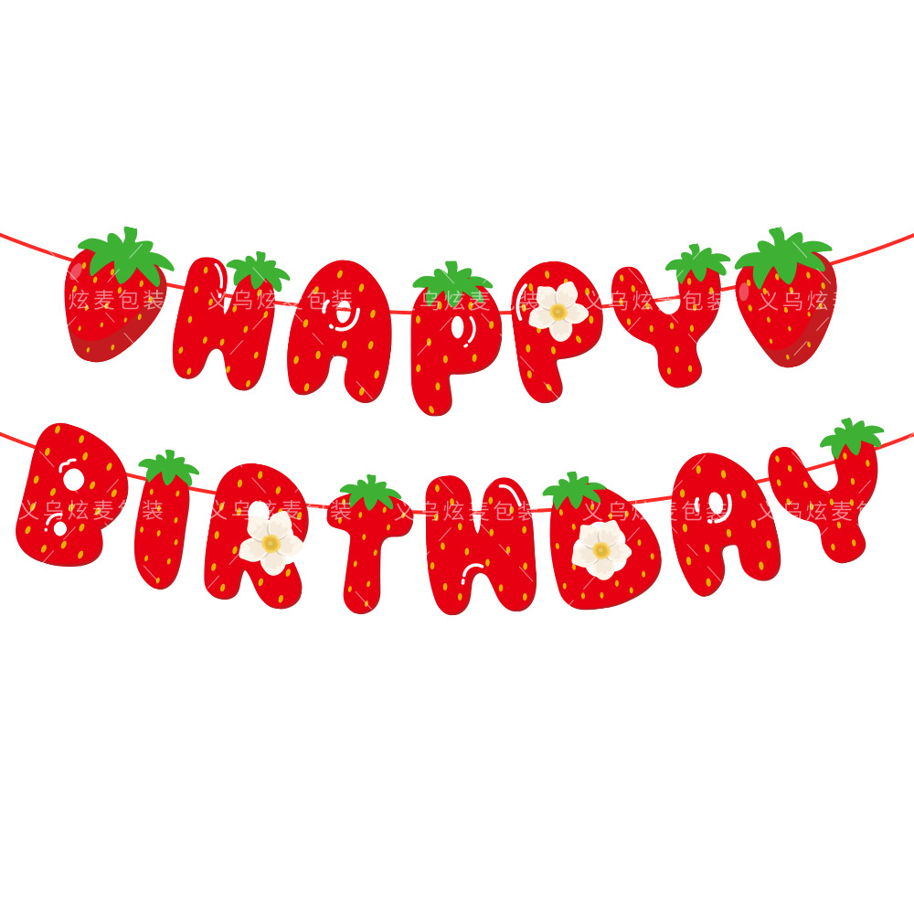 夏日草莓生日主题套装 派对装饰生日拉旗蛋糕大小插旗吹龙螺旋 投诉