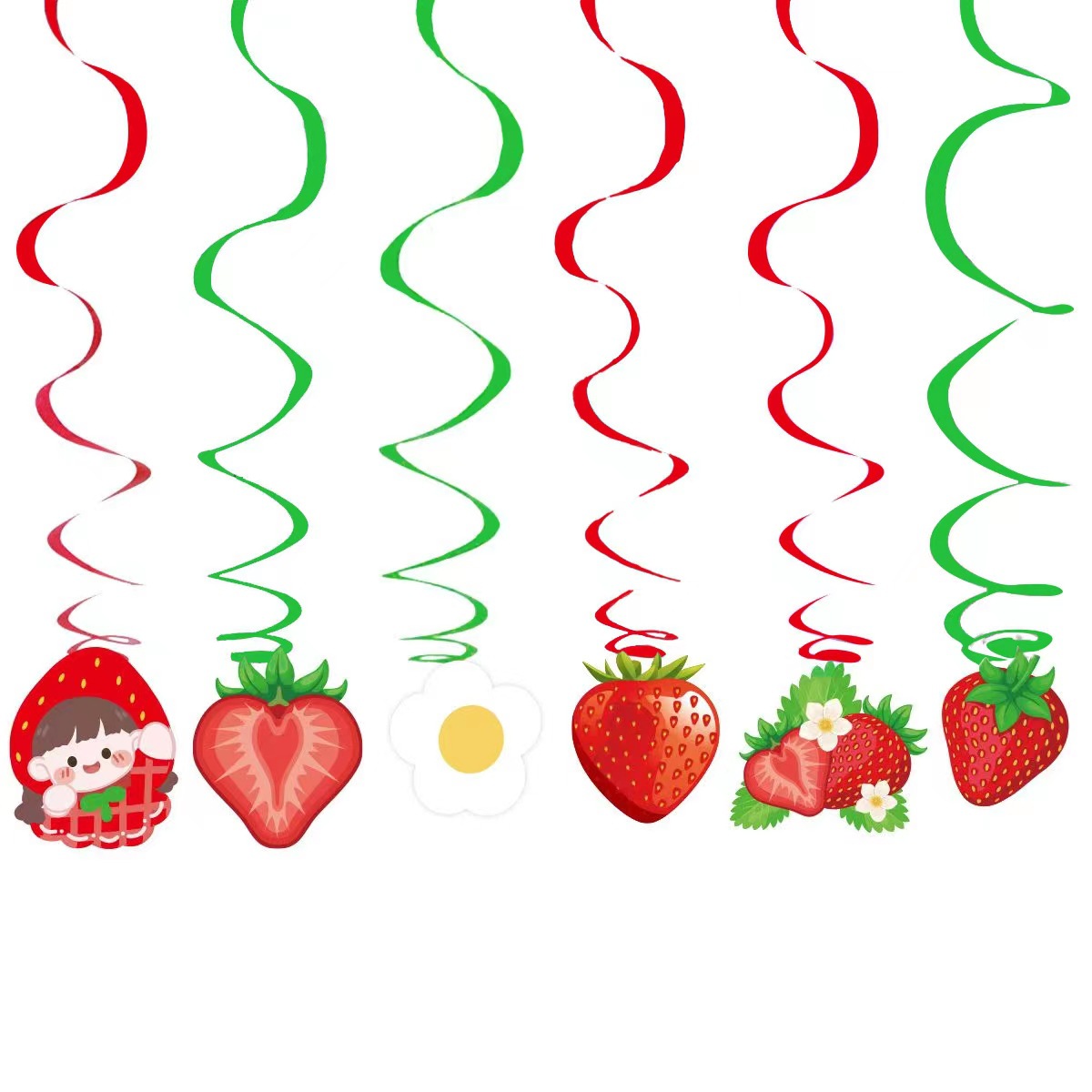夏日草莓生日主题套装 派对装饰生日拉旗蛋糕大小插旗吹龙螺旋