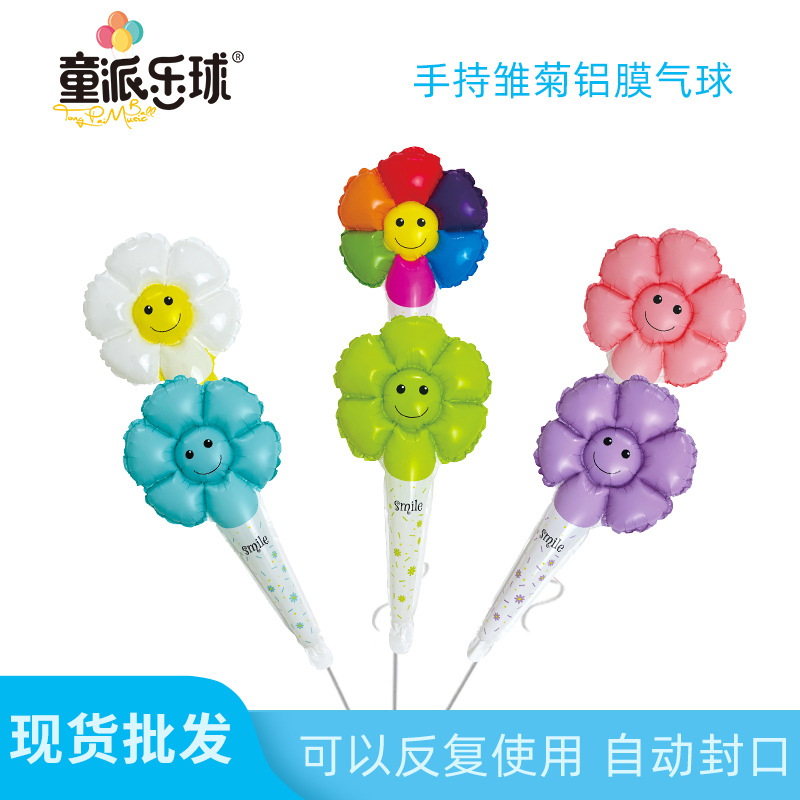新款批发手持雏菊铝膜气球地推摆摊公园拍照装饰神器小雏菊气球 投诉